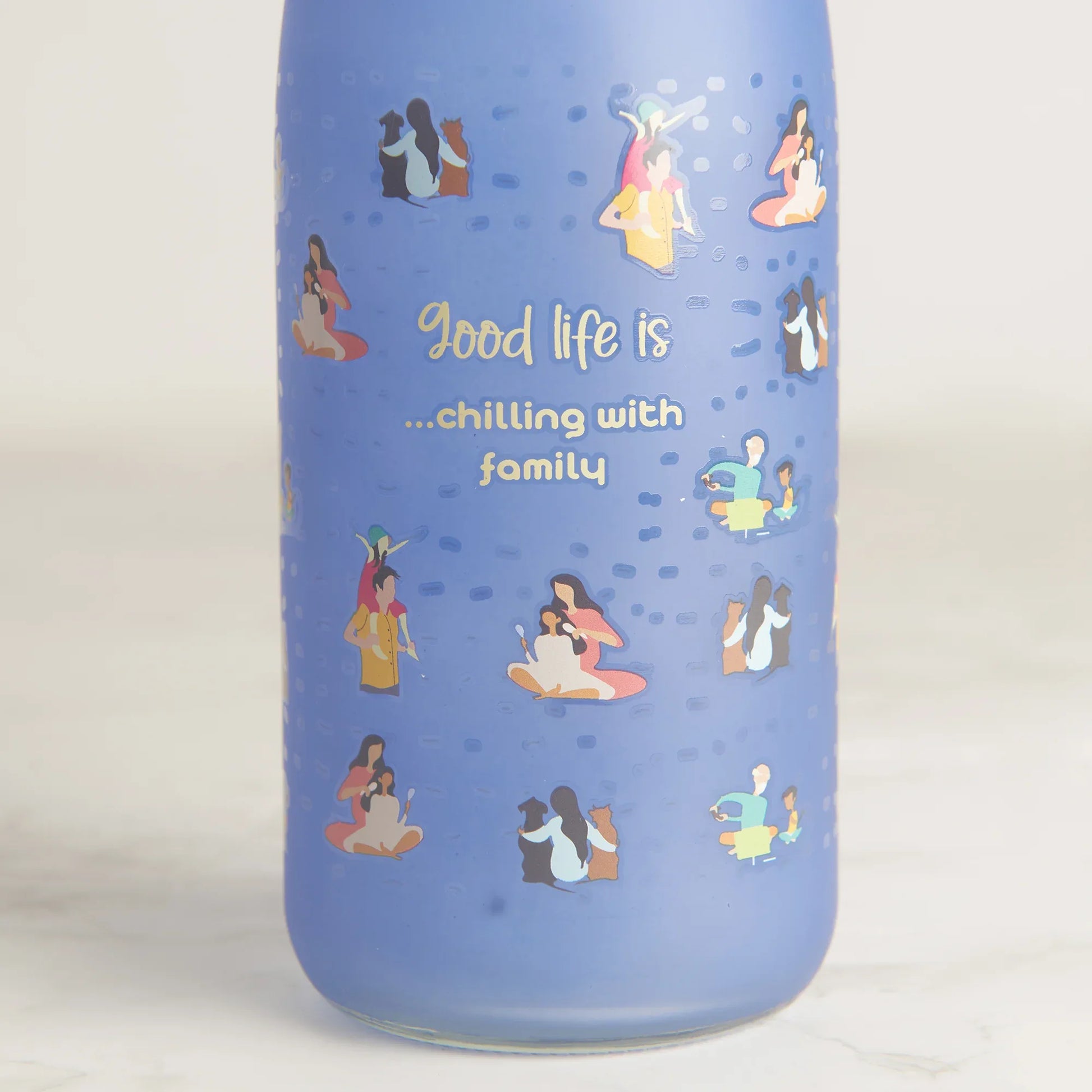 Good Life Glass Frosted Milk Bottle 1 Ltr in Blue Colour