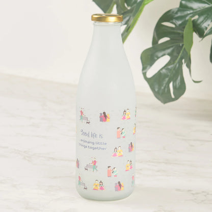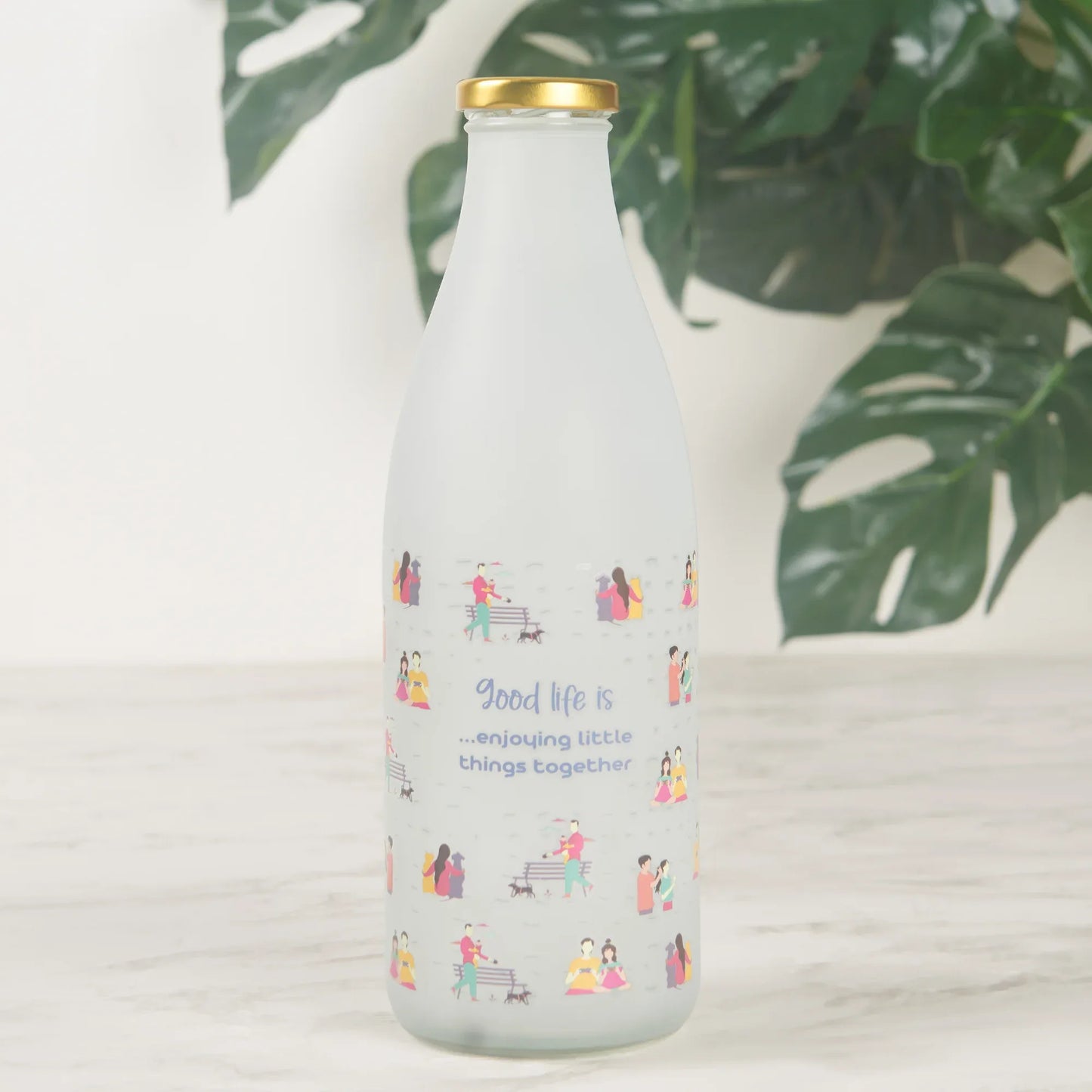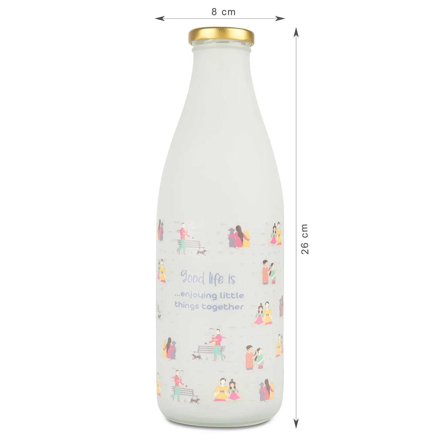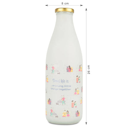 Good Life Glass Frosted Milk Bottle 1 Ltr in White Colour
