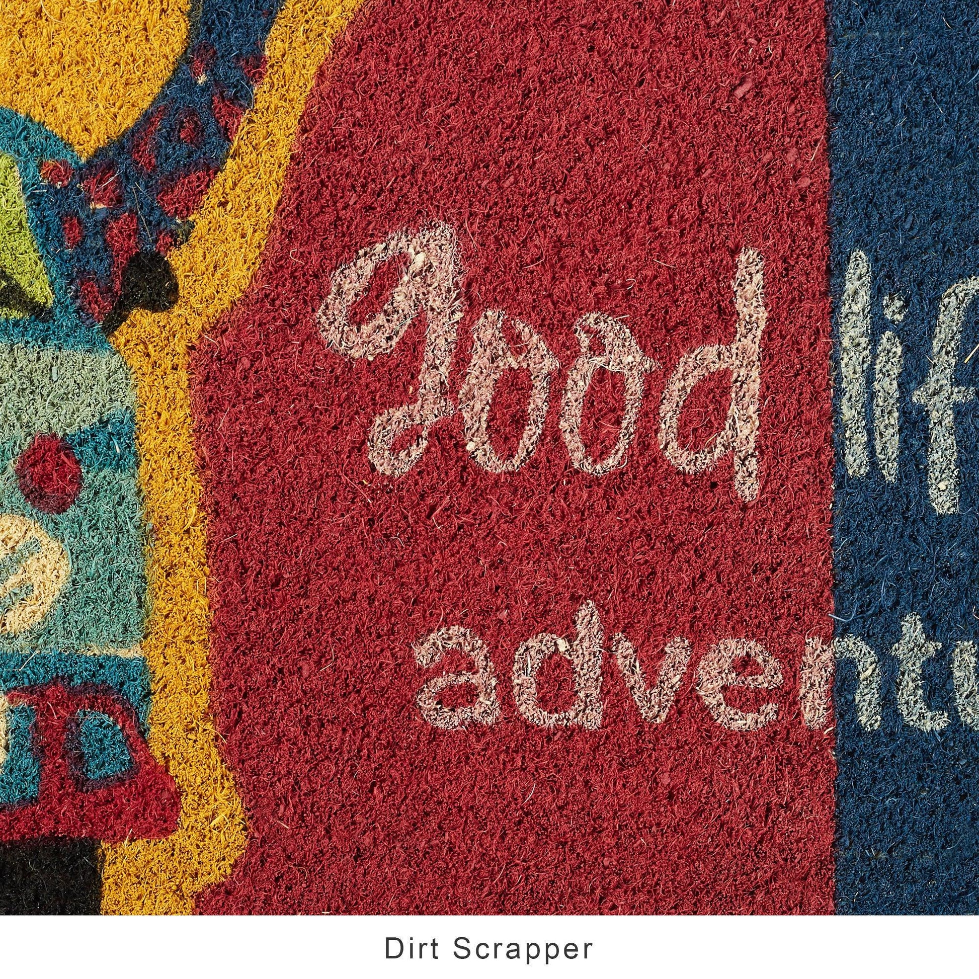 - Showcase the hippie traveller in you, with our vibrant and colourful van printed doormat from our good life is collection. Crafted with coir and backed with PVC, this functional doormat has hard bristles which provides improved scraping and is slip resistant. The doormat is designed to be durable and long lasting. It is easy to clean and maintain.