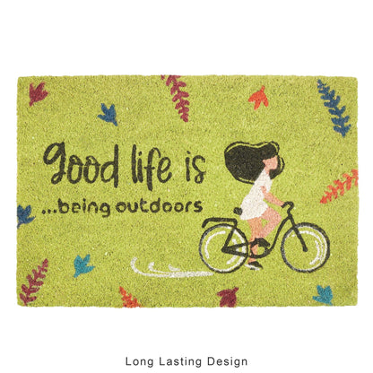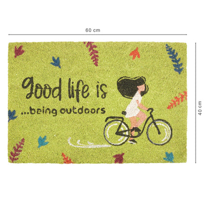 Good Life Is Being Outdoors Printed Coir Doormat 40x60 CM in Green Colour