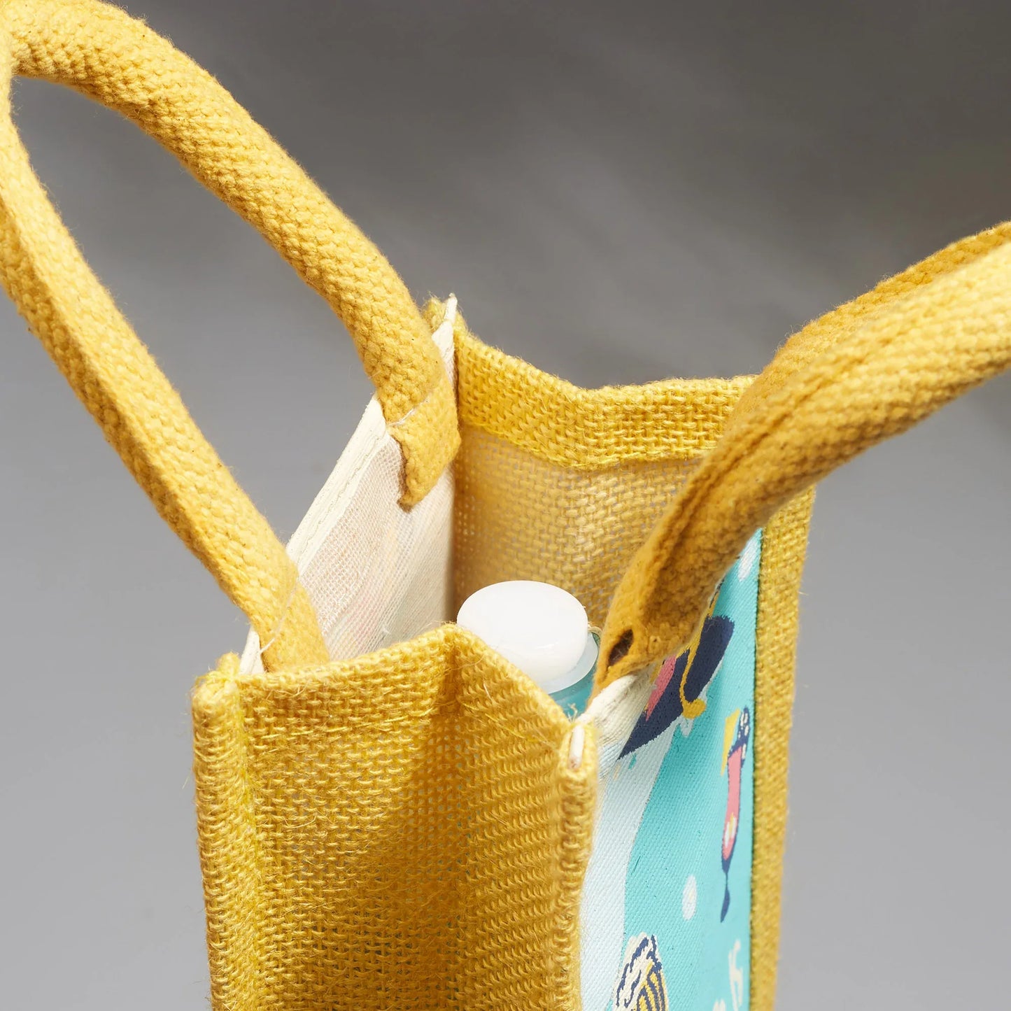 Good Life Jute Reversible Stay Hydrated Printed Zuco Bottle Bag 12 x 35.5 Cm in Turq & Yellow Colour