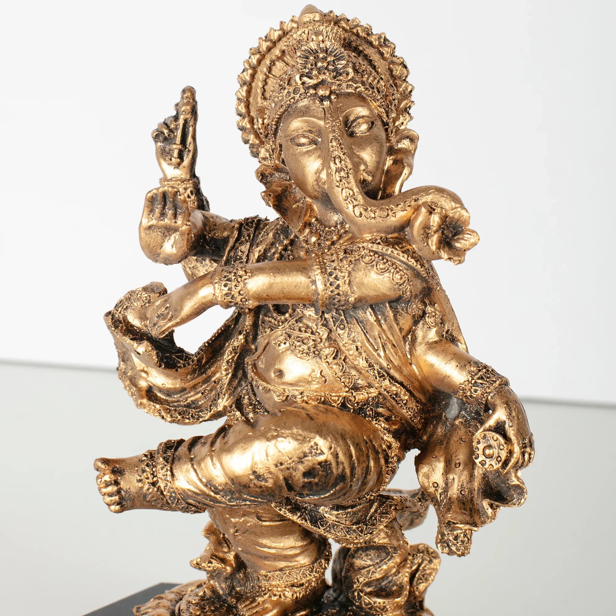 Grace Polyresin Natrag Ganesha Figurine Cum T-Light Holder 18Cm in Gold Colour