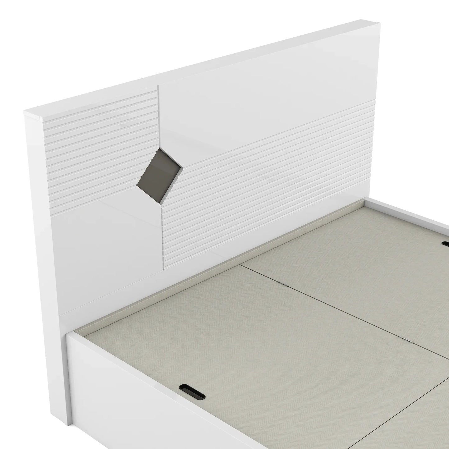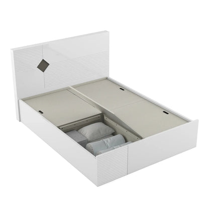 Gwen Queen Bed With Box Storage in White & Denim Colour