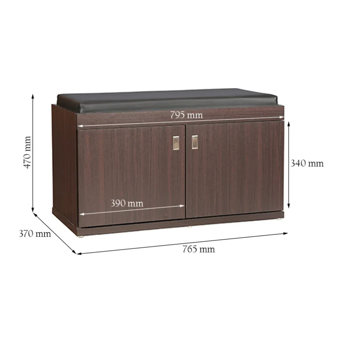 - 2 Door Shoe Rack with seat cushion on top allows you to seat and wear