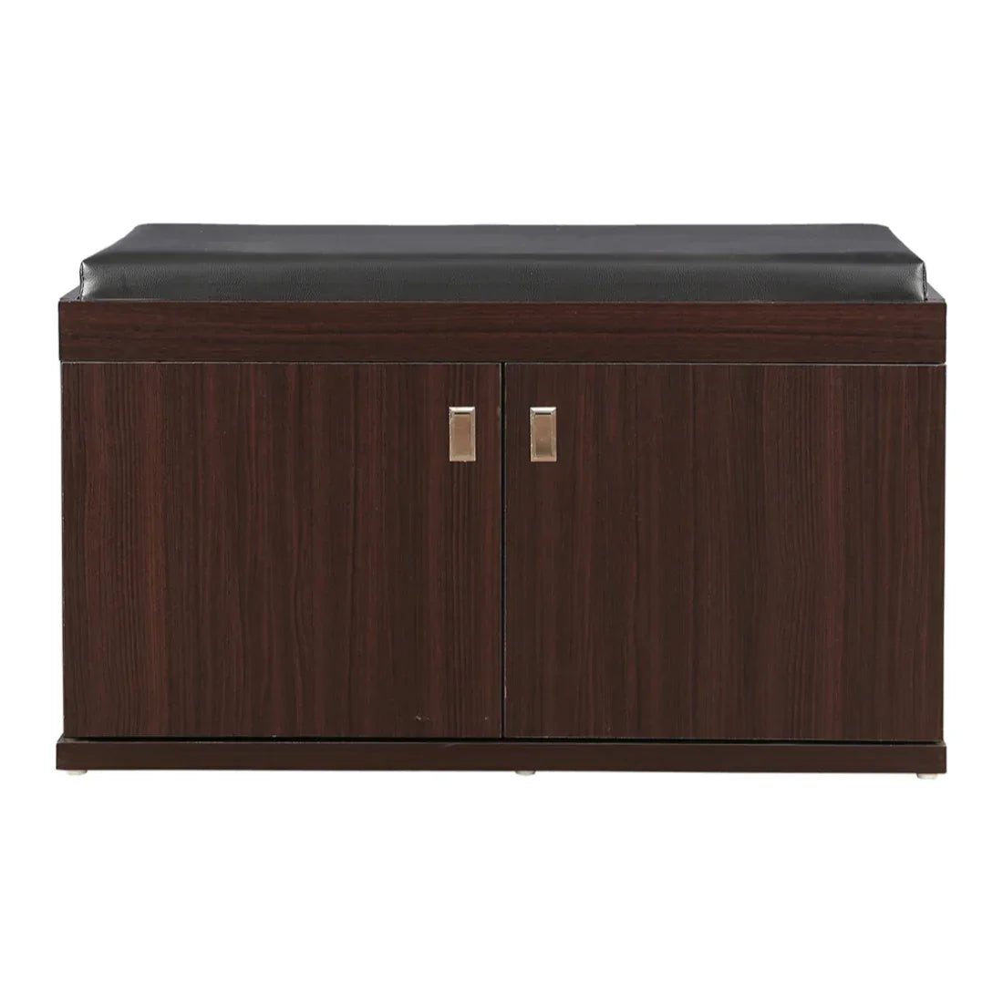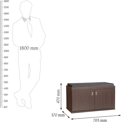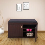 HomeTown Engineered Wood 2 door Shoe Rack with Seat in Wenge Colour