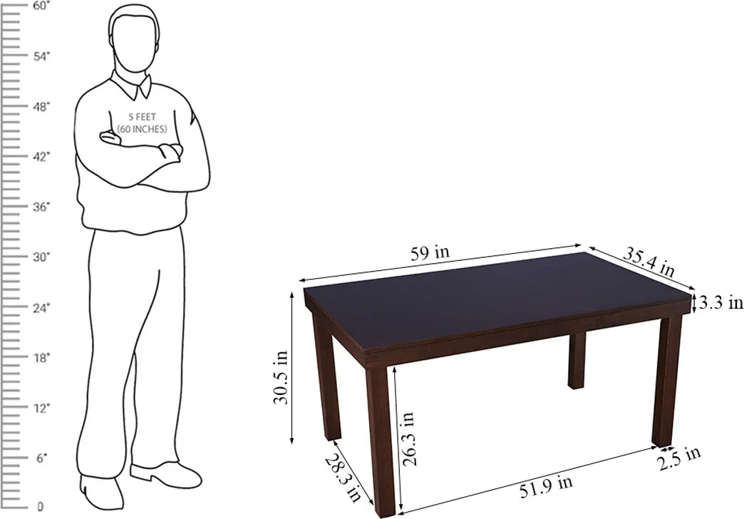 - Table frame and legs are made of seasoned & treated solid Rubber Wood for product durability.