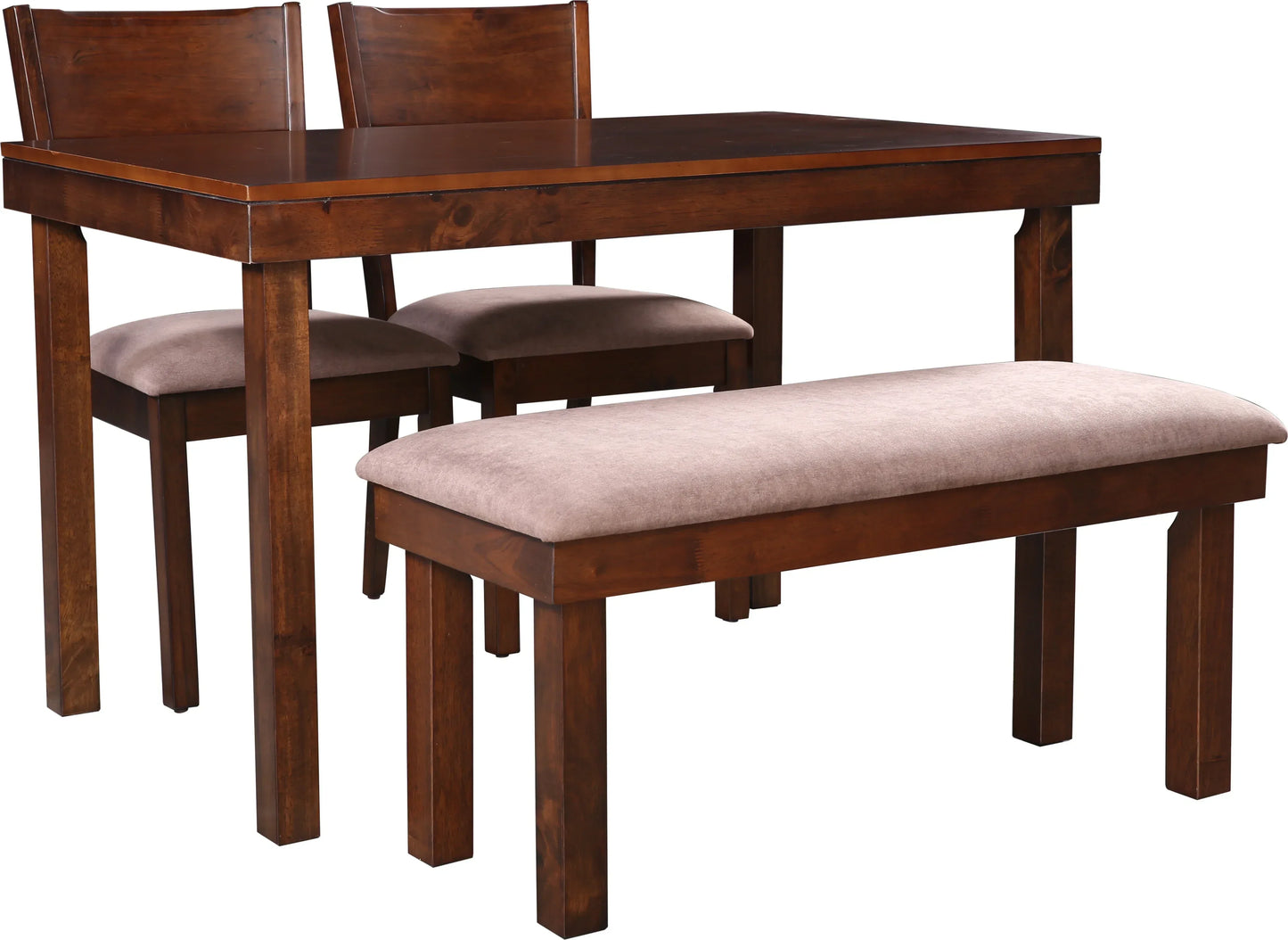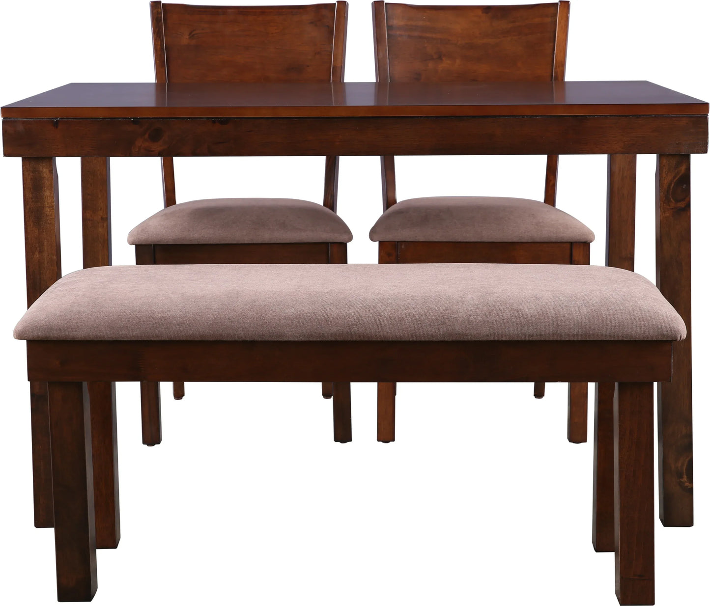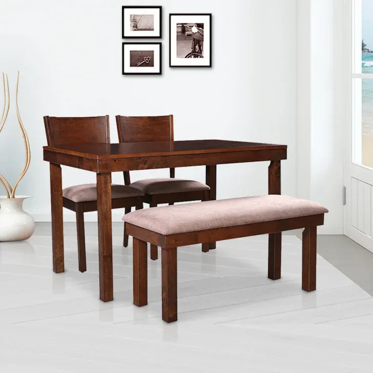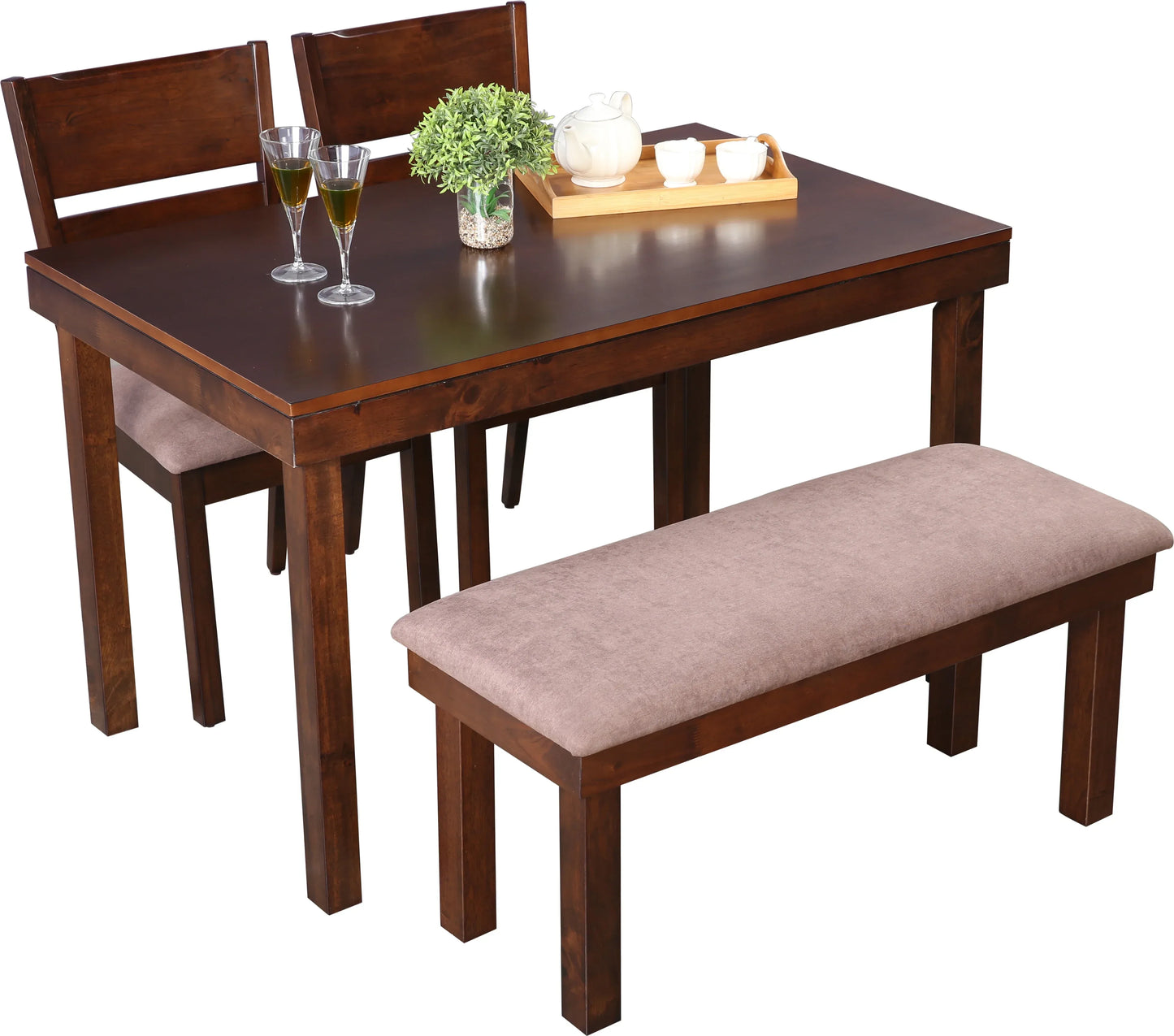 Hopton Solidwood Four Seater Dining Set With Bench in Walnut Colour