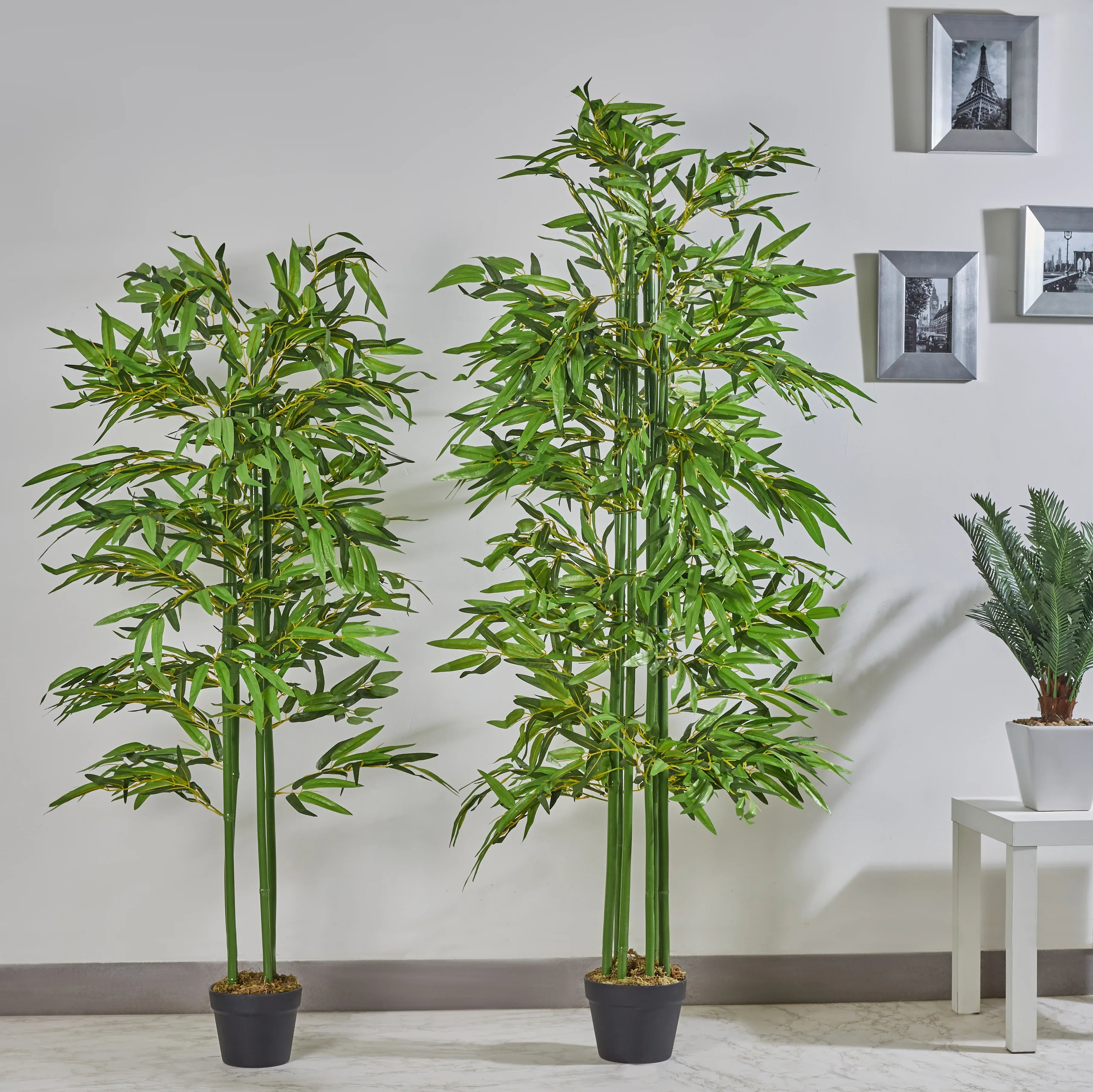 - The perfect piece to bring botanical beauty into your home without the upkeep of watering. Its vibrant green leaves and real bamboo trunks energize any space and adds timeless appeal.