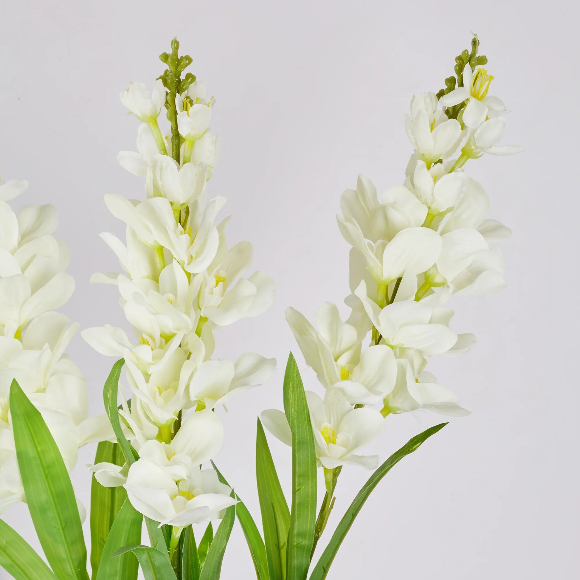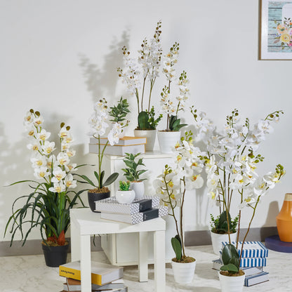 - This charming plant features lifelike look. Made from high-quality plastic materials, these flowers will amaze your guests with their realistic touch and feel. Artificial florals are the perfect, low-maintenance solution to bringing the beauty of fresh flowers into your home -- no sunlight or watering required. Realistic faux flowers create a relaxing, welcoming atmosphere and brightens up any space