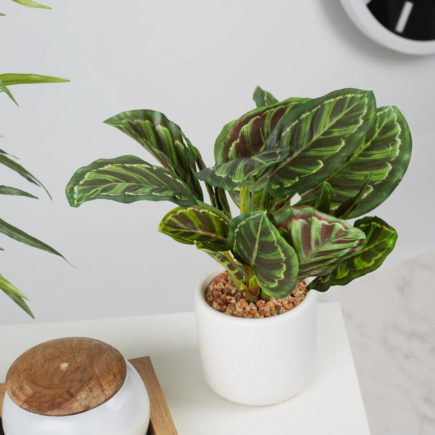 Ilana Faux Calathea Ceramic Potted Plant 25 Cm in Green Colour