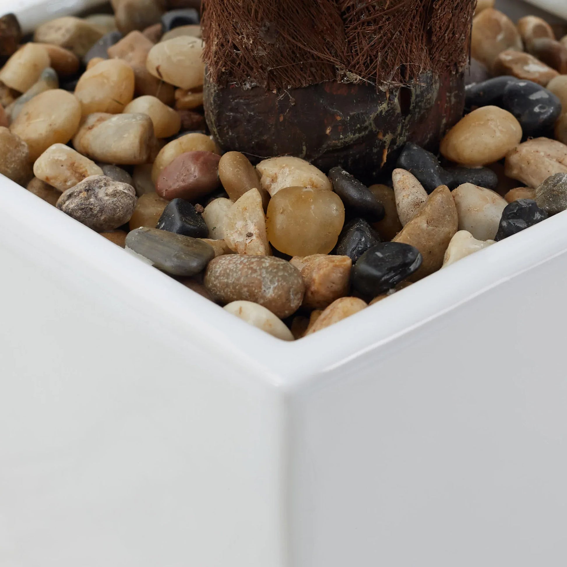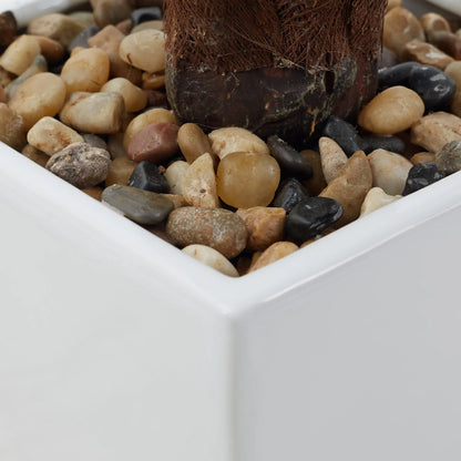 - Enhance the serene, natural vibes in your home space with a touch of greenery! This beautiful faux shrub sits atop a bed of pebbles and is encompassed within a square-shaped ceramic pot to add a visual layer of interest.
