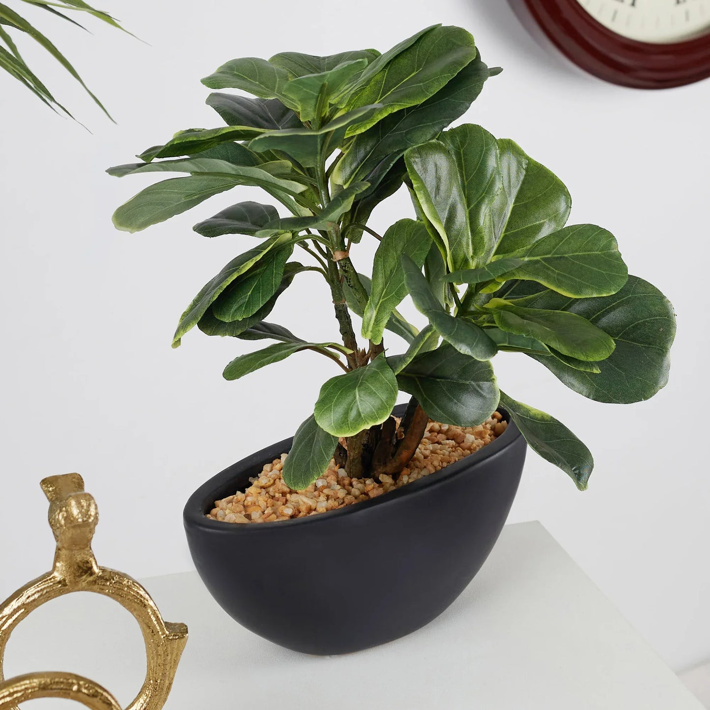 Ilana Faux Fiddle Ceramic Potted Plant 29 Cm in Green Colour