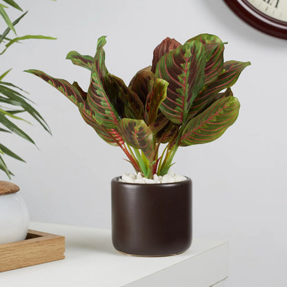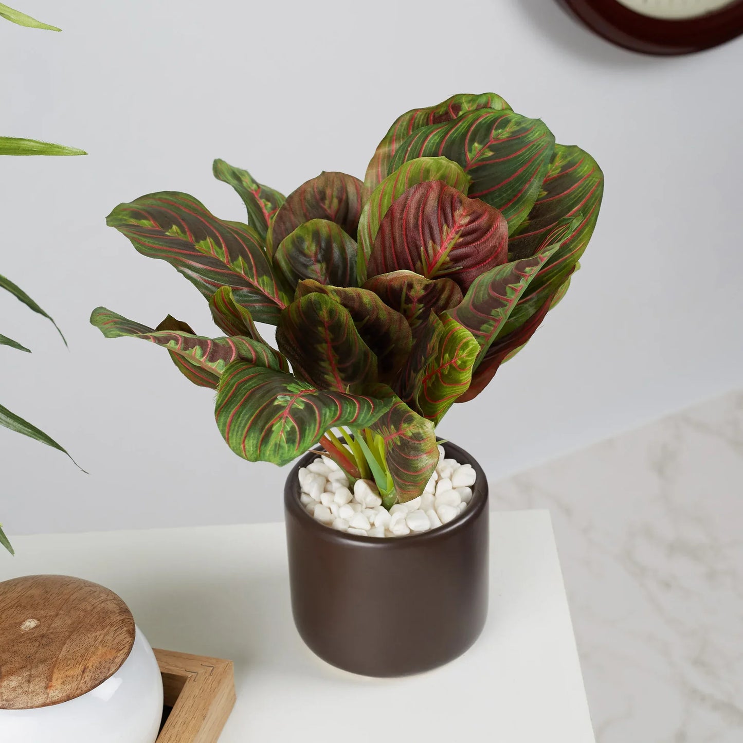 Ilana Faux Maranta Ceramic Potted Plant 25 Cm in Green Colour