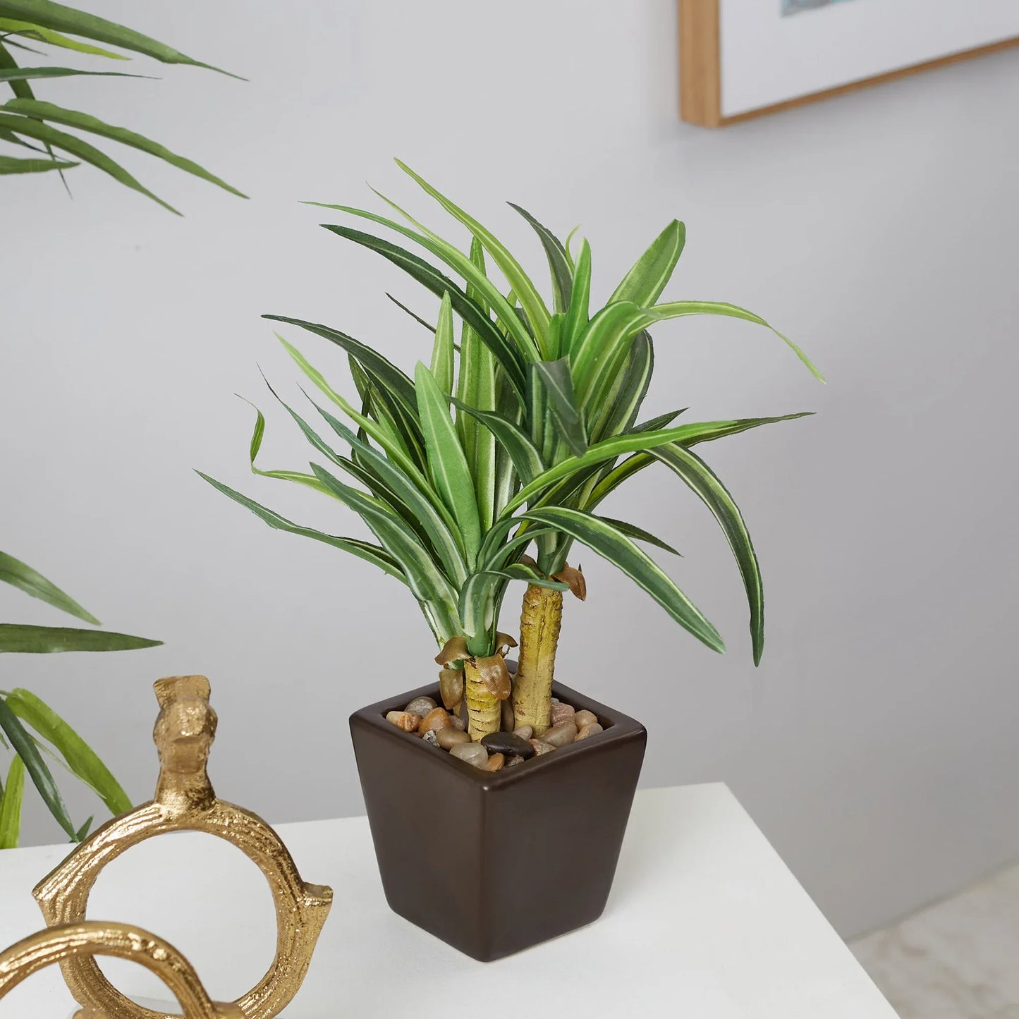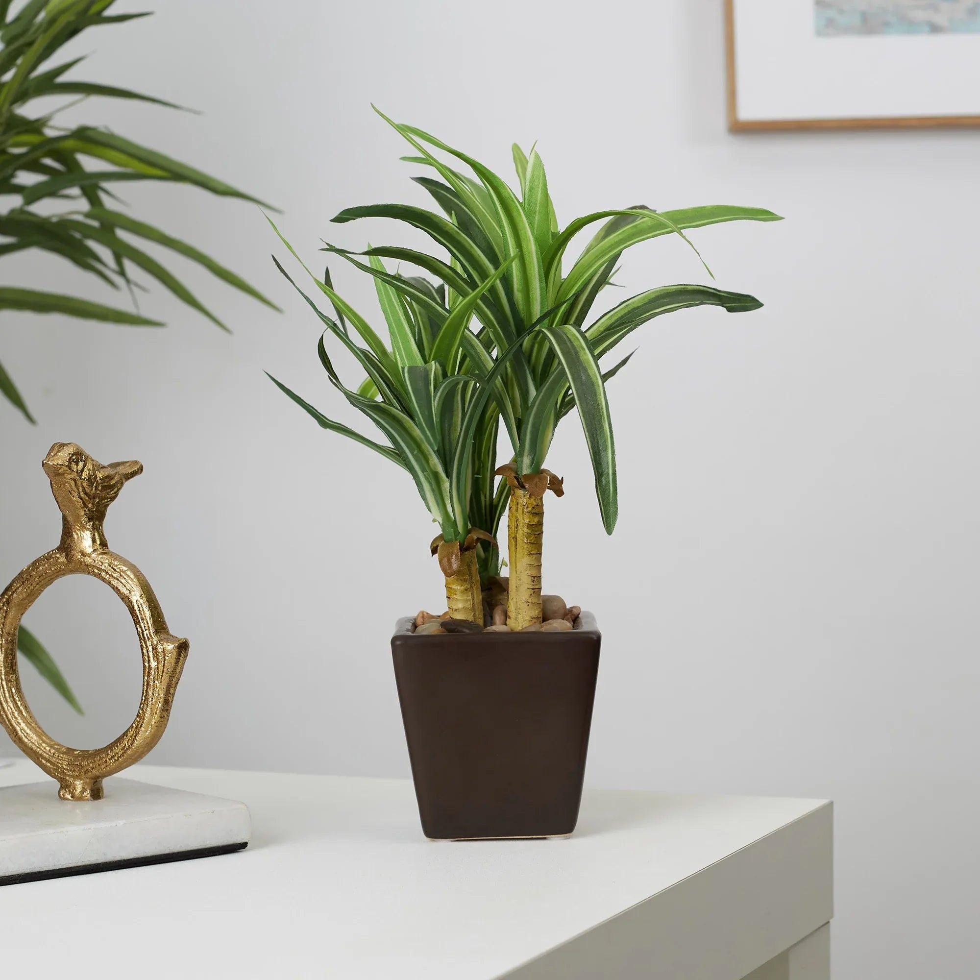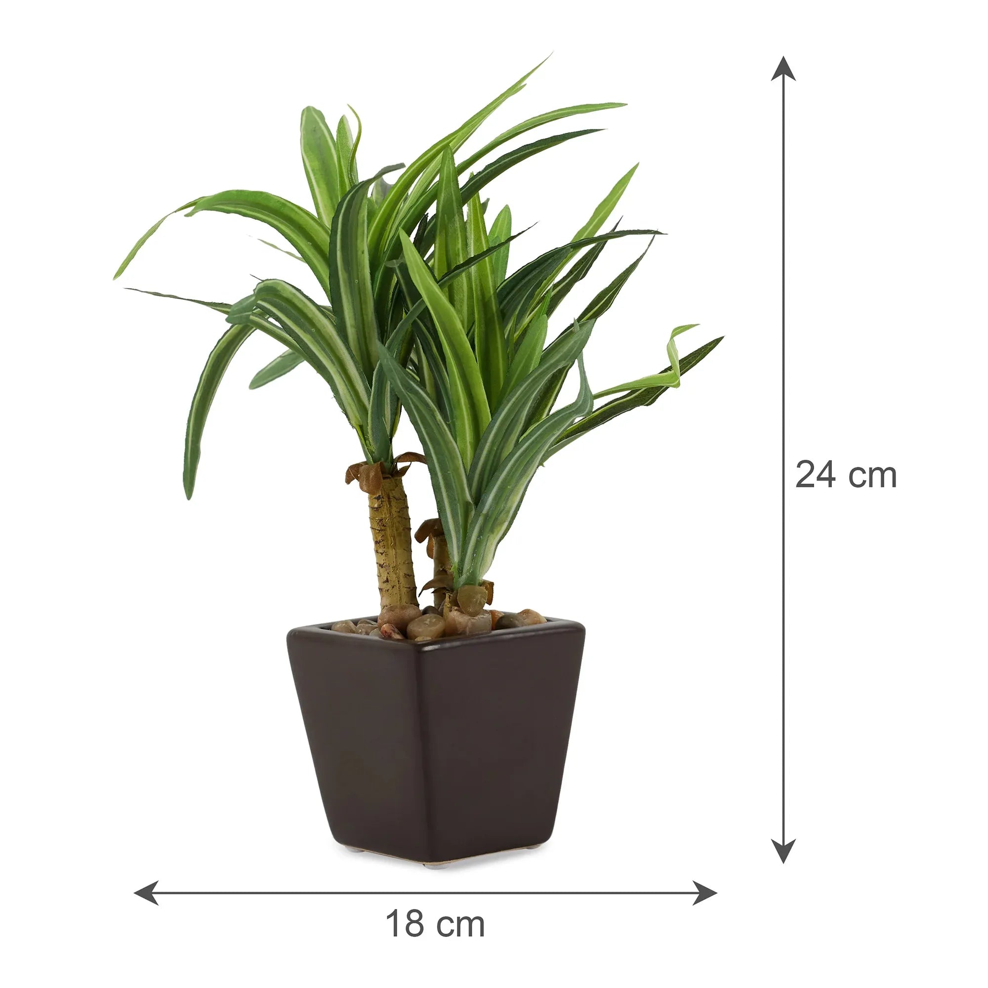 Ilana Faux Mini Dracaena 2 Ceramic Potted Plant 24 Cm in Green Colour