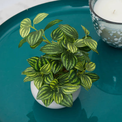 Ilana Faux Peperomia Ceramic Potted Plant 17 Cm in Green Colour