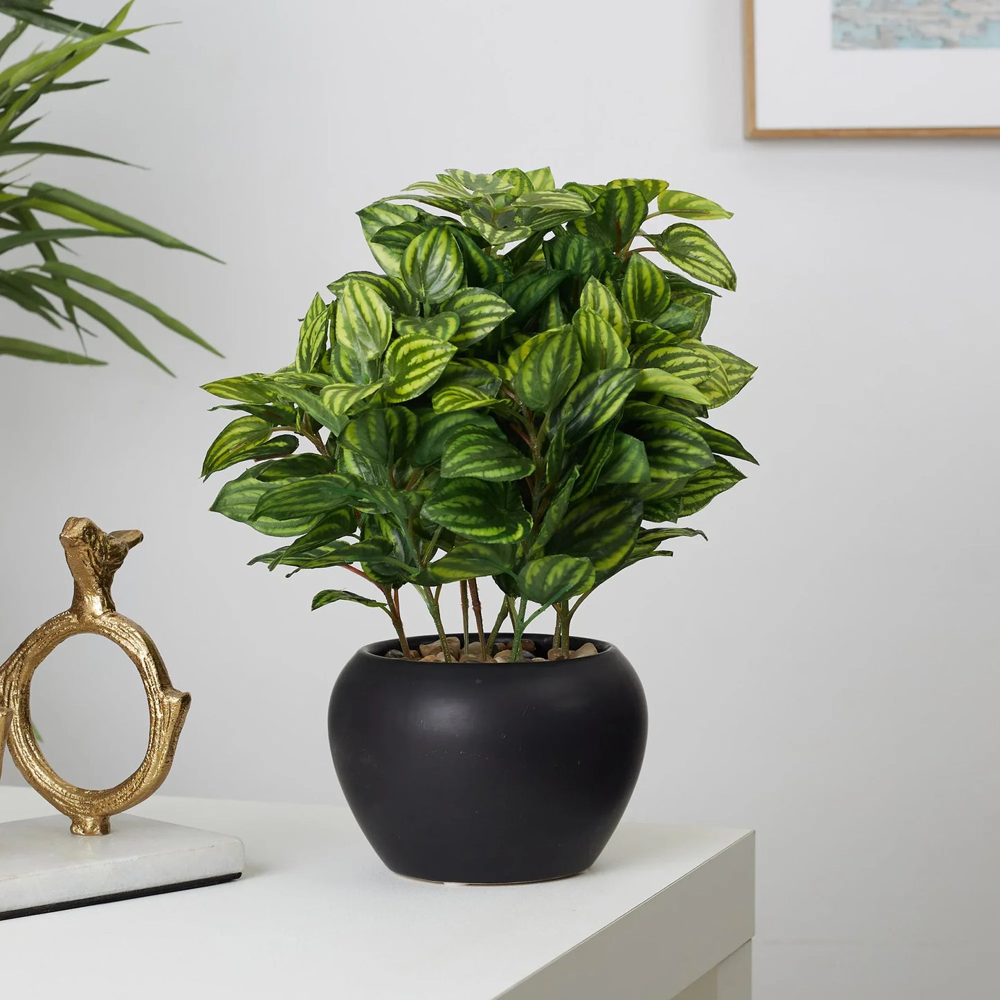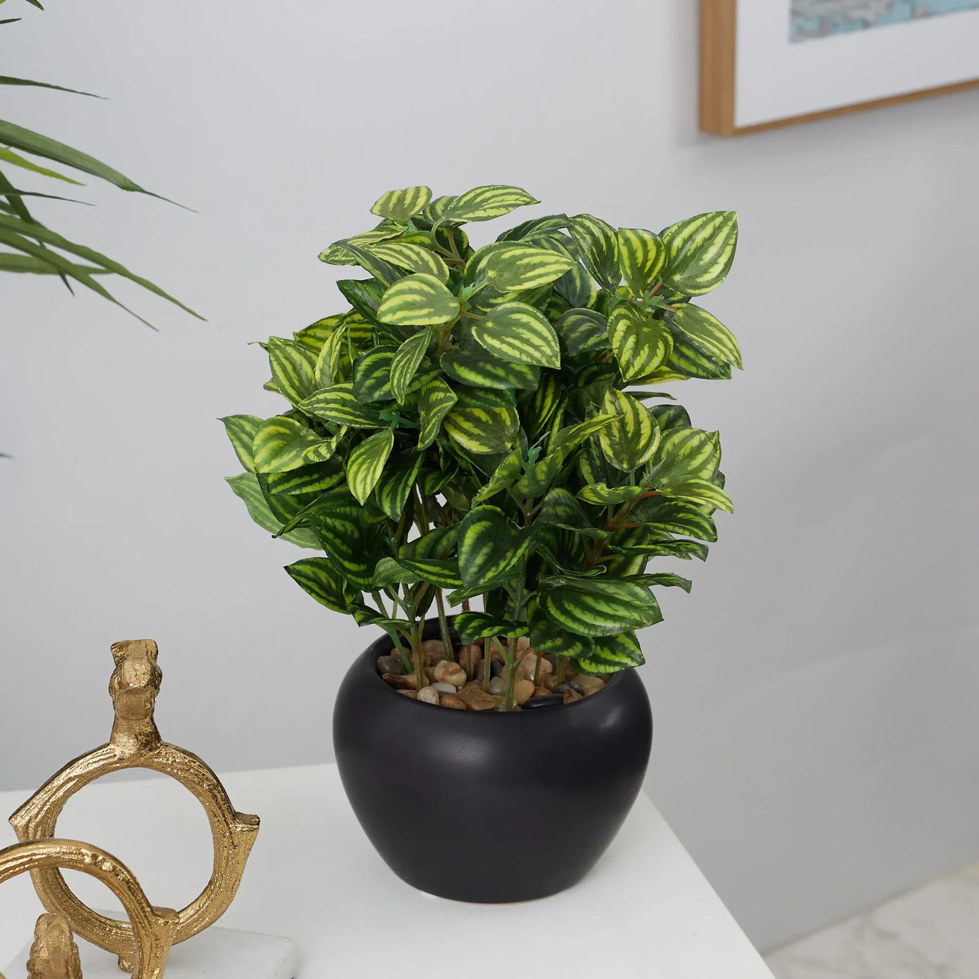 Ilana Faux Peperomia Ceramic Potted Plant 27 Cm in Green Colour