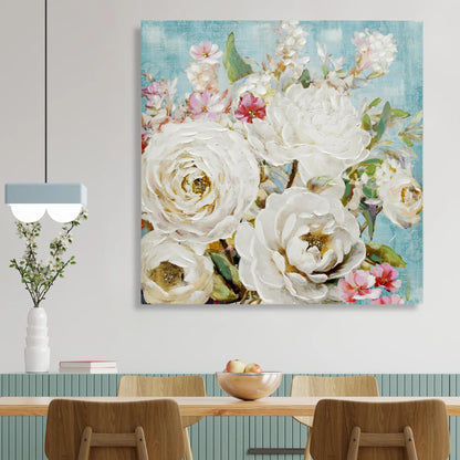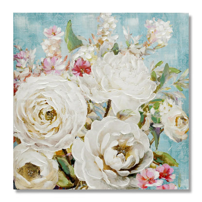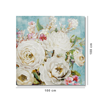 Ilona Fancy Flowers Handmade Canvas Painting With Glitter 100x100 Cm in White Colour