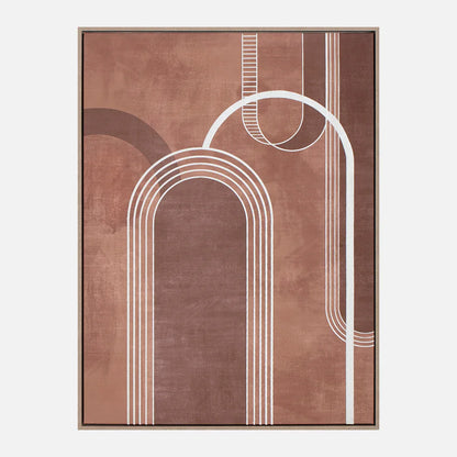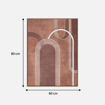Elevate your space with our captivating abstract canvas, which will become a part of your modern contemporary collection. This exquisite artwork features a mesmerizing arch design, adorned with rich maroon, white, and rust-like tones in a symmetrical format. Its warm hues infuse any room with a welcoming ambiance, while its abstract allure adds a touch of sophistication.