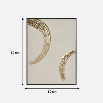 Crafted with meticulous attention to detail, this hand-finished masterpiece is set on a premium canvas and framed with a sleek wood composite. Its minimalistic design and luxurious gold accents make it a versatile statement piece, ideal for elevating the aesthetic of any room.