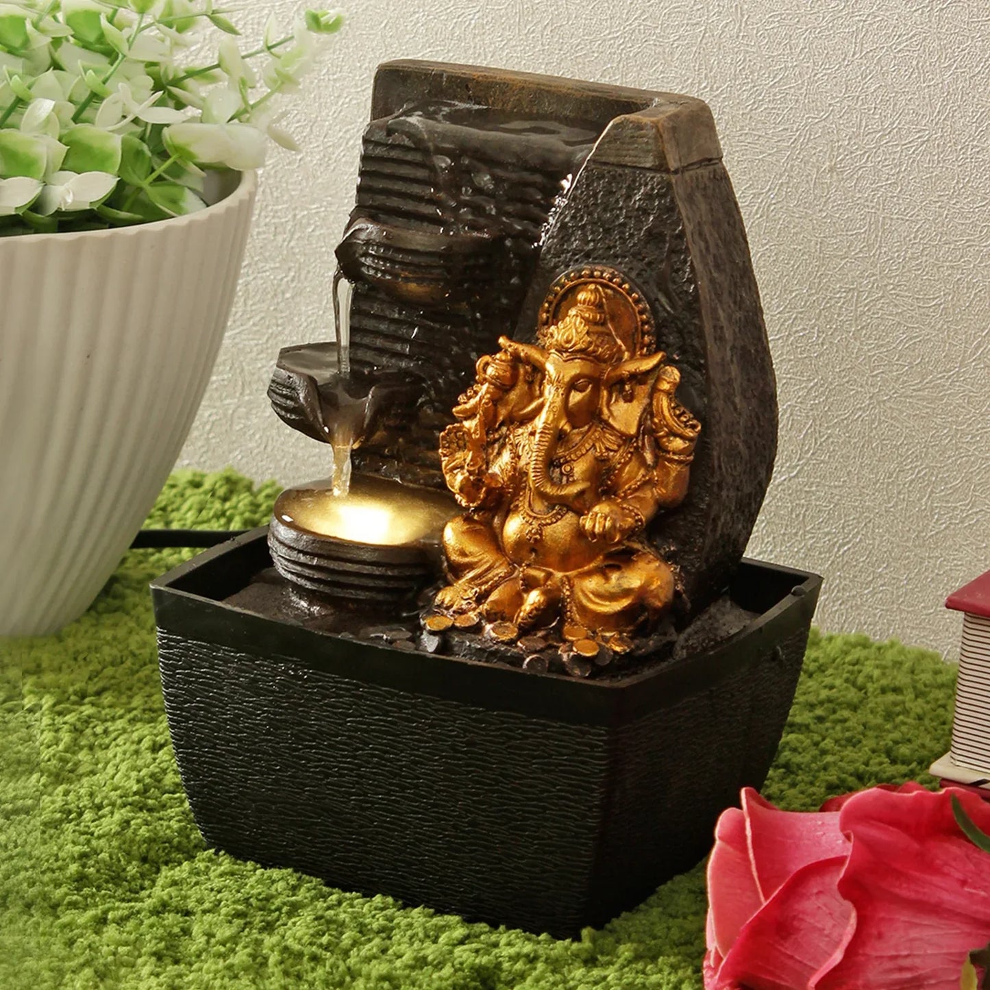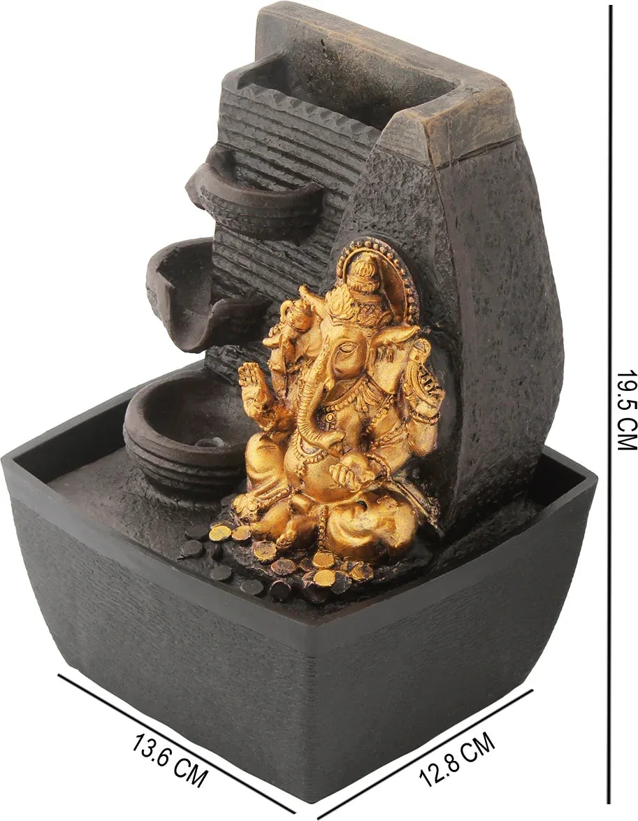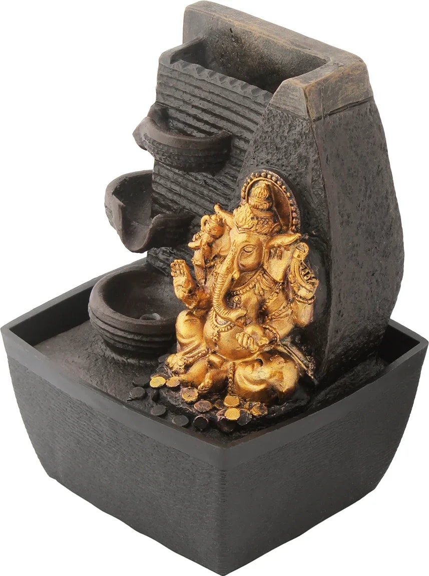 - Fill your indoor spaces with tranquillity and elegance by bringing a Ganesha Fountain to your space. A water body is known to soothe ones mind and soul. Two fold fountain rich in function and decor properties, is handcrafted by skilled artisans. Liven up your interiors with the help of this durable, elegant and long lasting fountain.