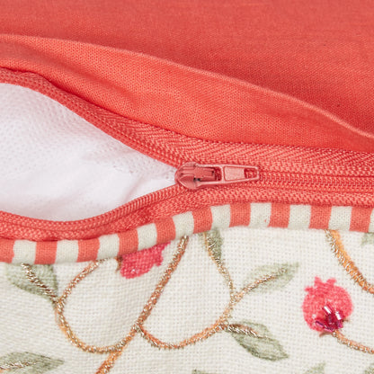 Indian Botanical Cotton Cushion Cover 40x40 cm in Multi Pink Colour