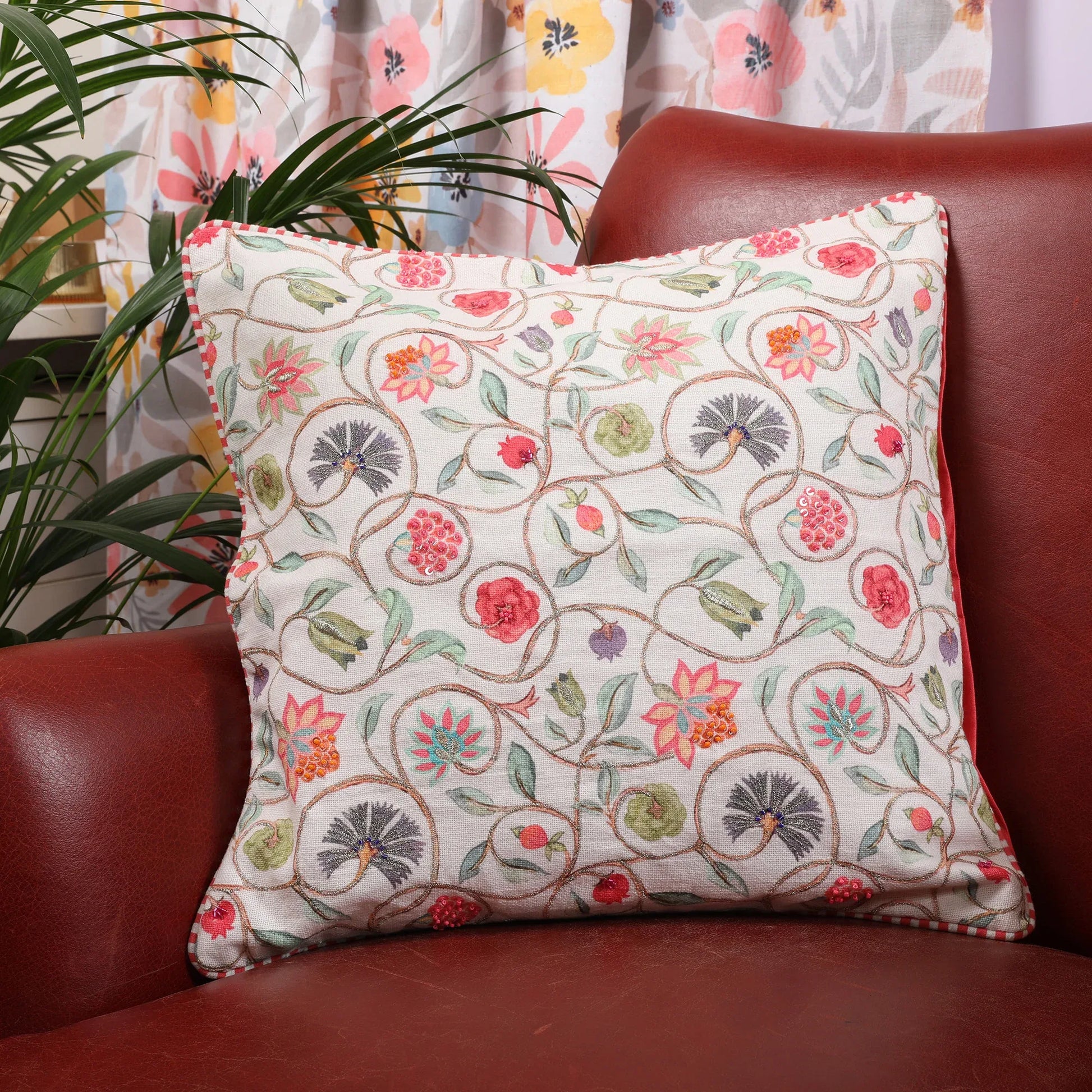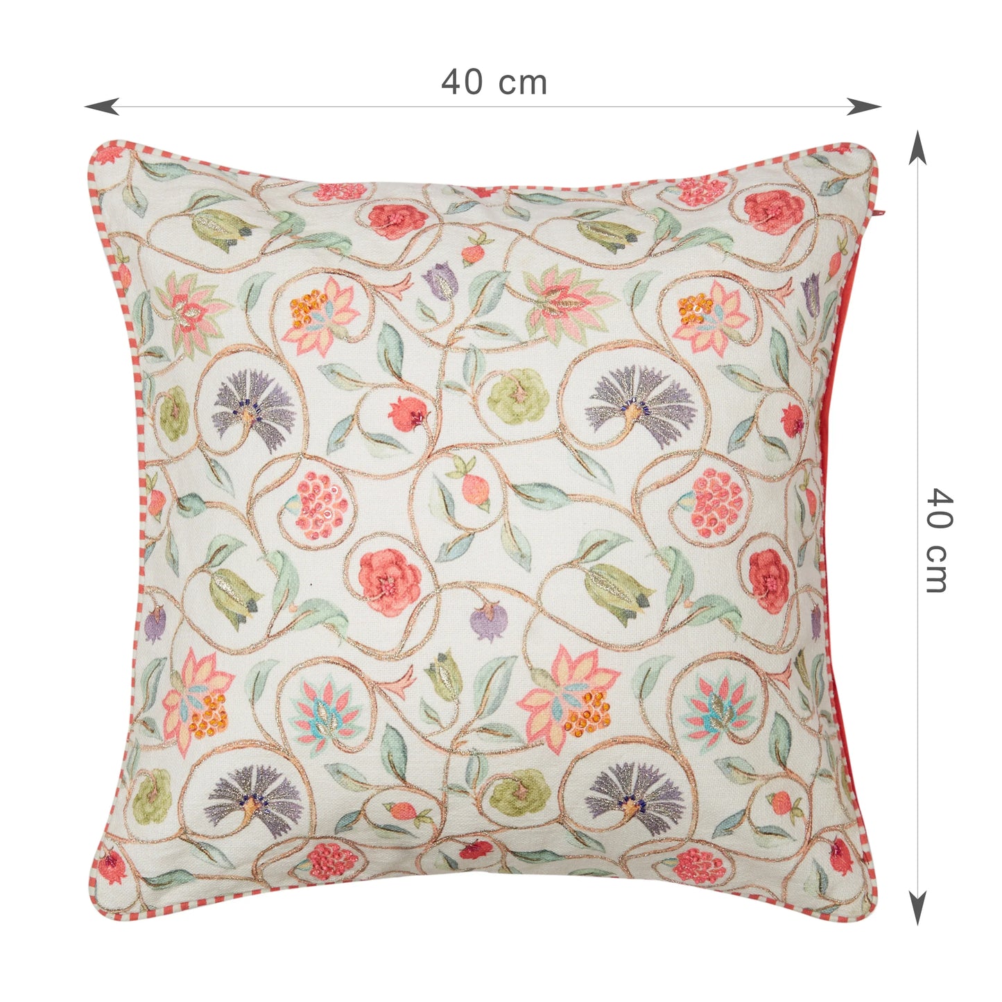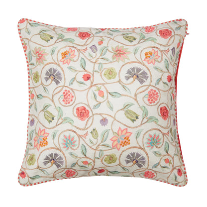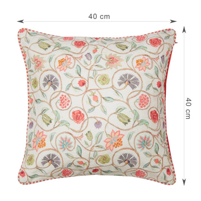 Indian Botanical Cotton Cushion Cover 45x45 cm in Multi Pink Colour
