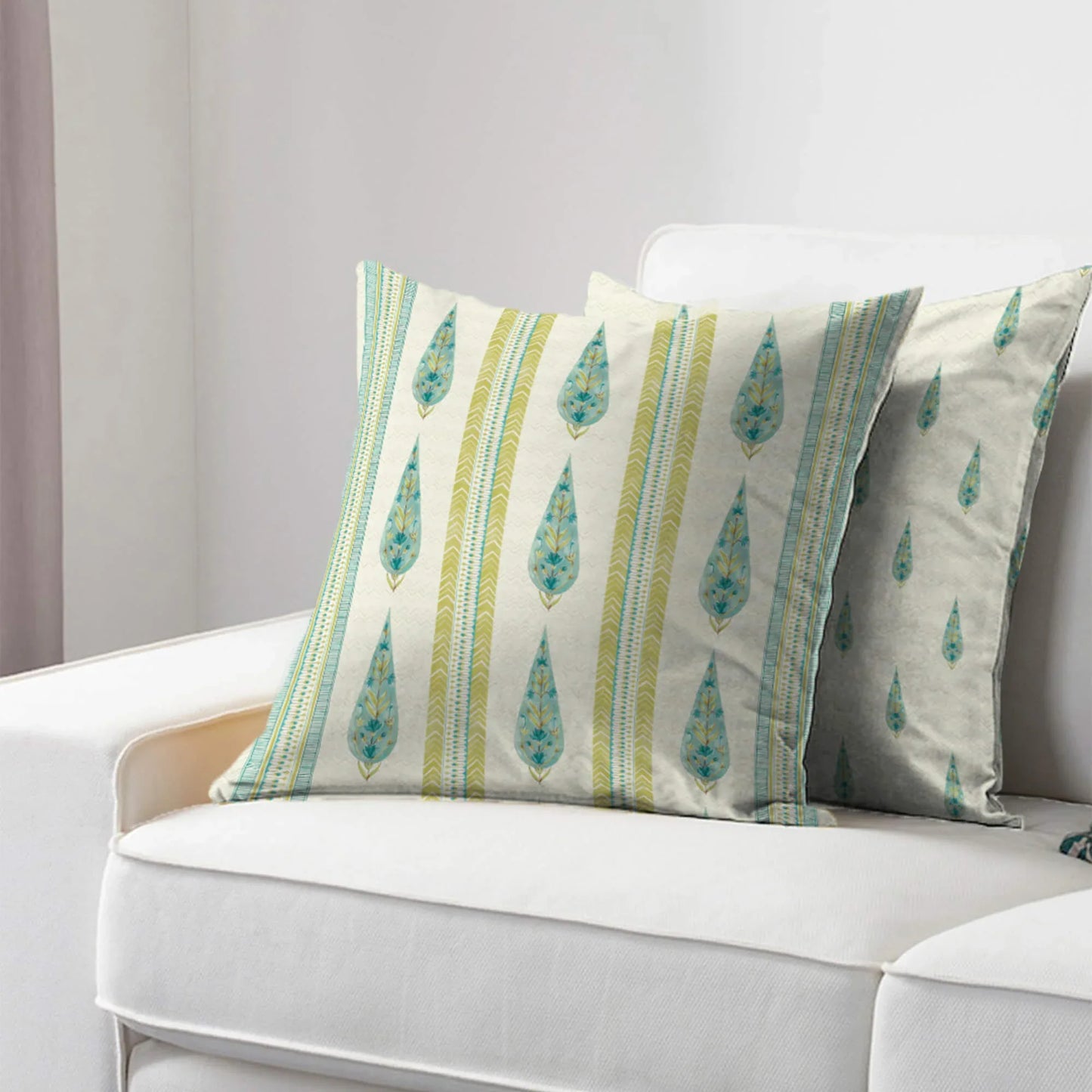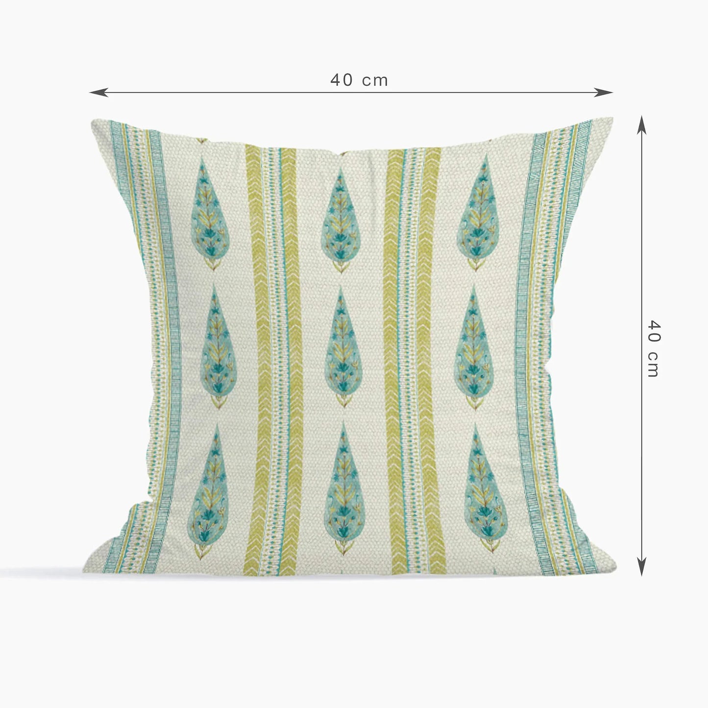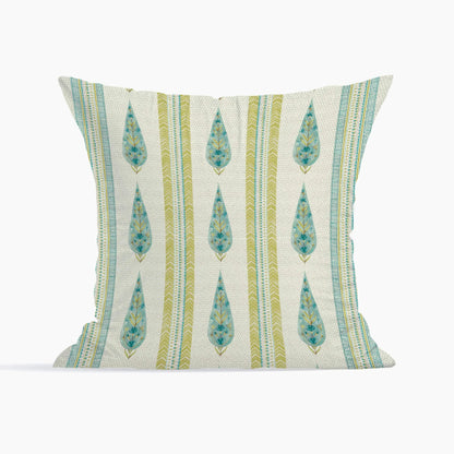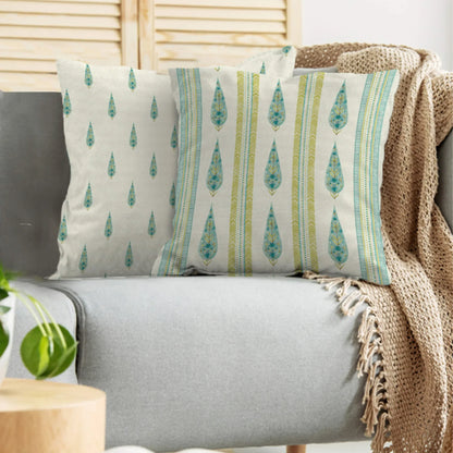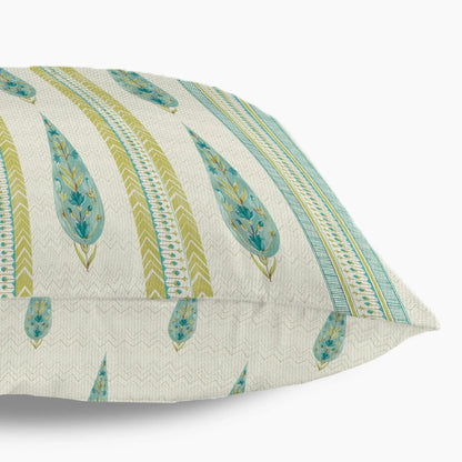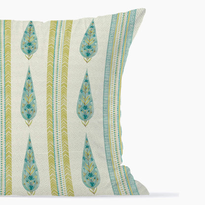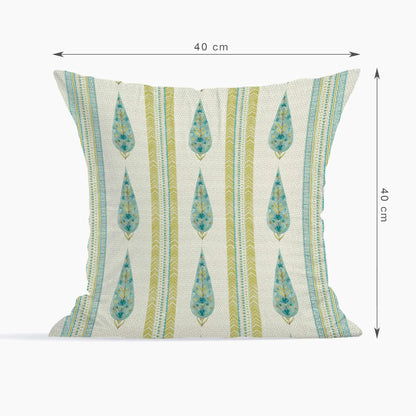 Indian Botanical Reversible Stripe Digital Printed Cushion Cover 40x40 Cm in Aqua Colour