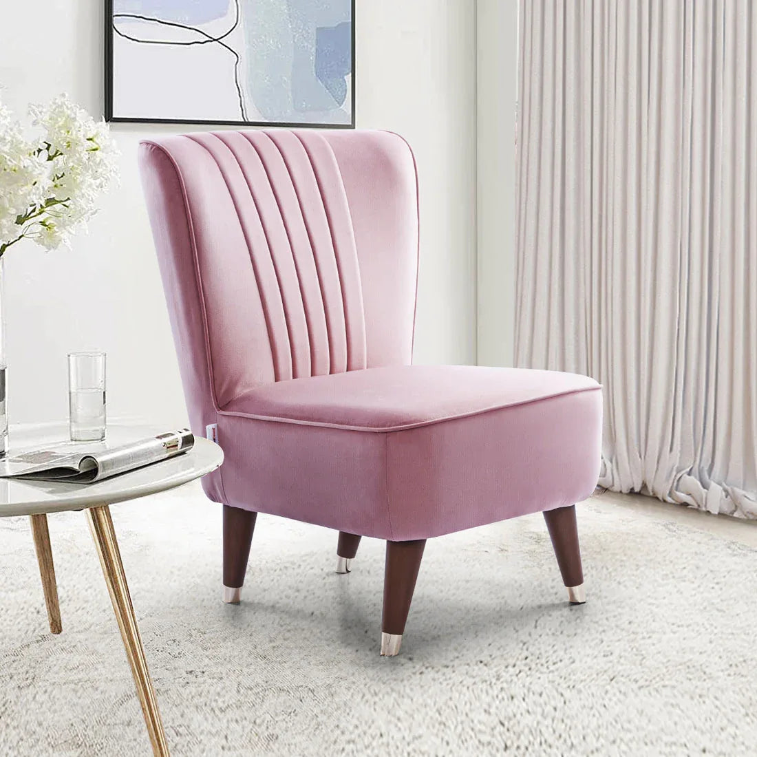 Jane Velvet Accent Chair in Pink Colour