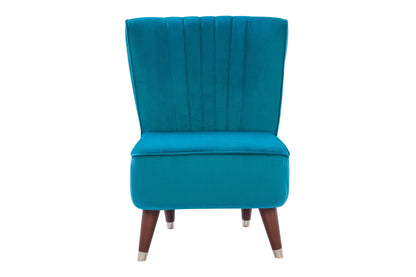 The Jane sea green accent chair elevates the charm and ambience of your home. The stylish and eclectic accent chairs upholstered in soft velvet fits perfectly in all types of home. An accent chair for everyone, The Jane accent chair is soft and curved in its silhouette with arched back that hugs your back gently. The solid wood frame ensures the durability of the construction with golden tips on the legs to package the look into an elegant seating option.
