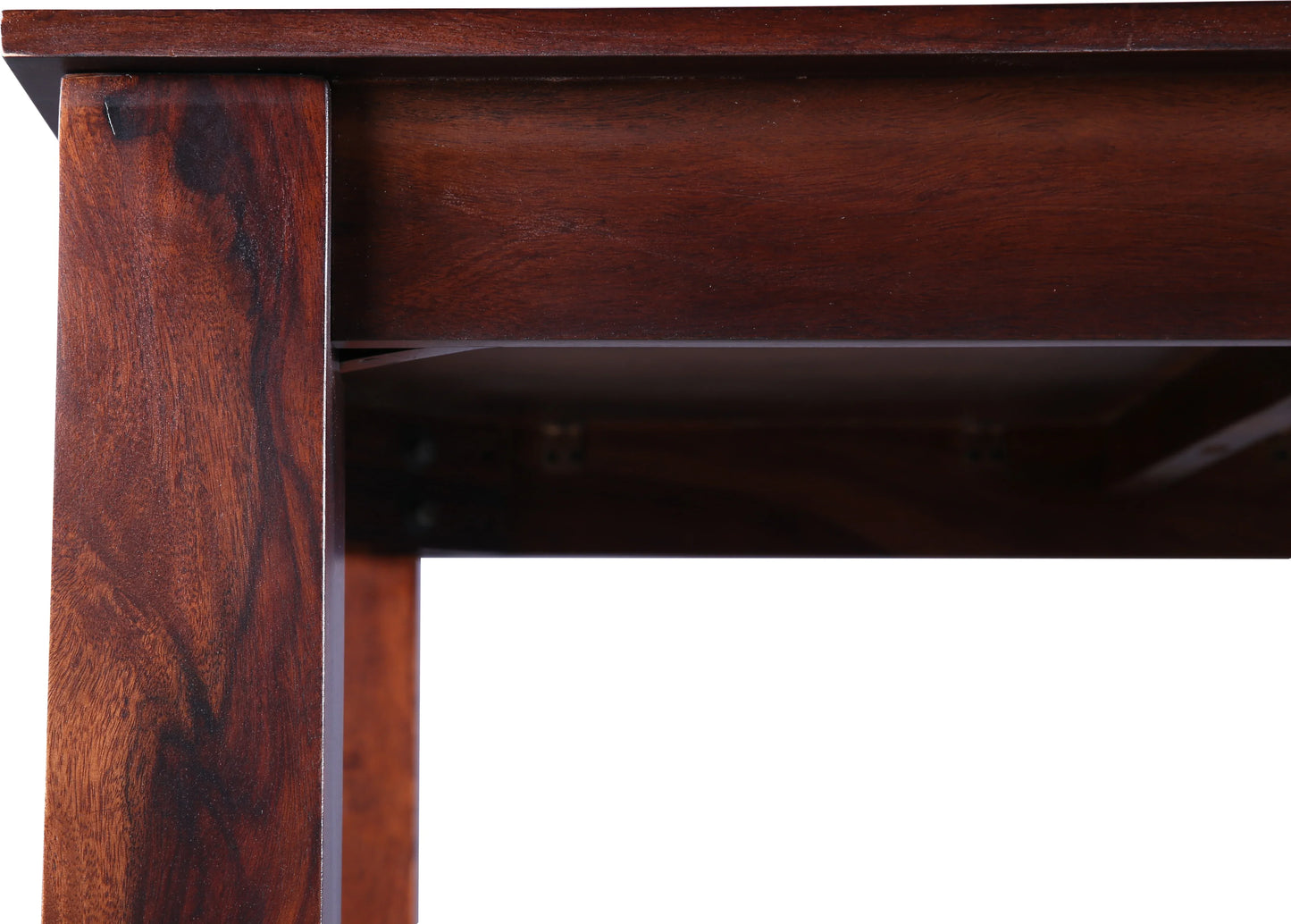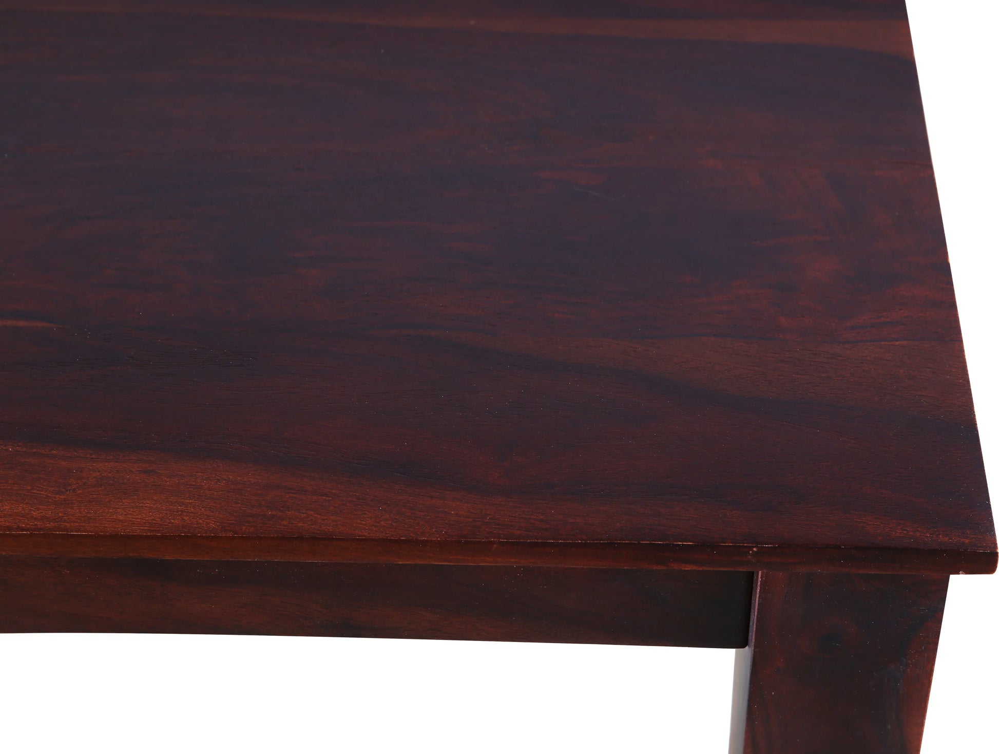 Dark walnut finished, raw and earthy textured- The Jaxon six seater dining table, grabs attention in your dining room. The table is robust and durable, beautifully crafted from thick Indian Sheesham wood. It is sturdy and emits traditional essence.