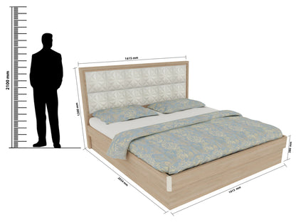 Jordan Queen Bed With Hydraulic storage in Sonam Oak & White Colour