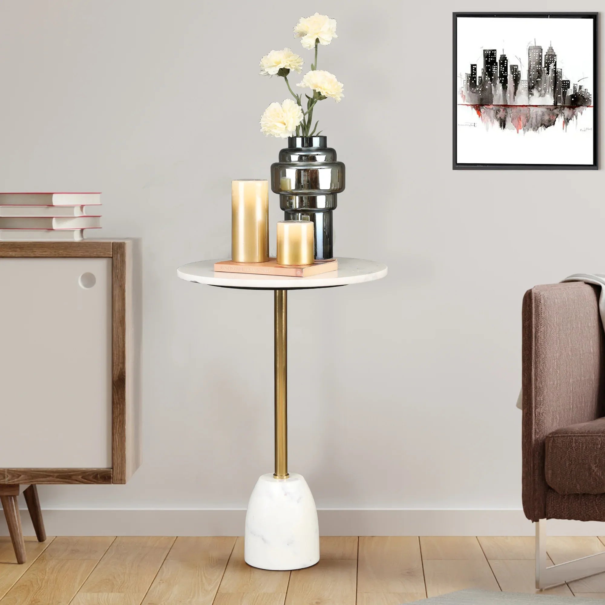 Julios Metal Side Table in Gold & White Colour
