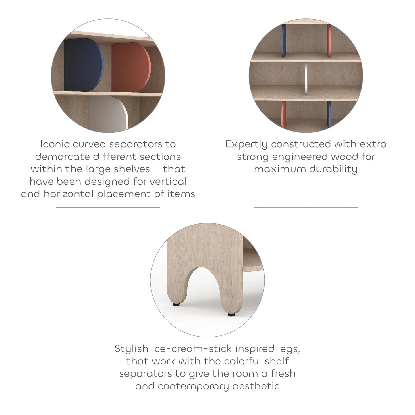 USEFUL FEATURES: The shelves are designed for easy stacking, allowing you to organize books, toys, games, and more efficiently. It provides ample space for various items, making it a practical storage solution for any childs room. Iconic curved separators demarcate spaces within each shelf, helping to keep items organized both vertically and horizontally.