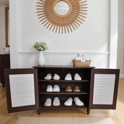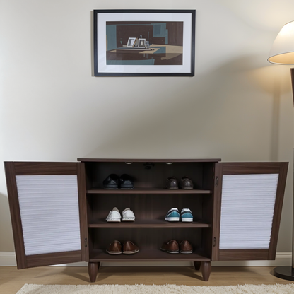 - 12-Pair Shoe Storage: Functional 2-door cabinet with internal shelves to neatly store up to 12 pairs of footwear.