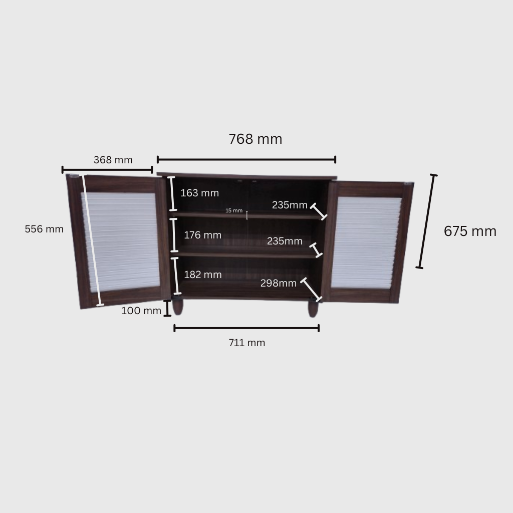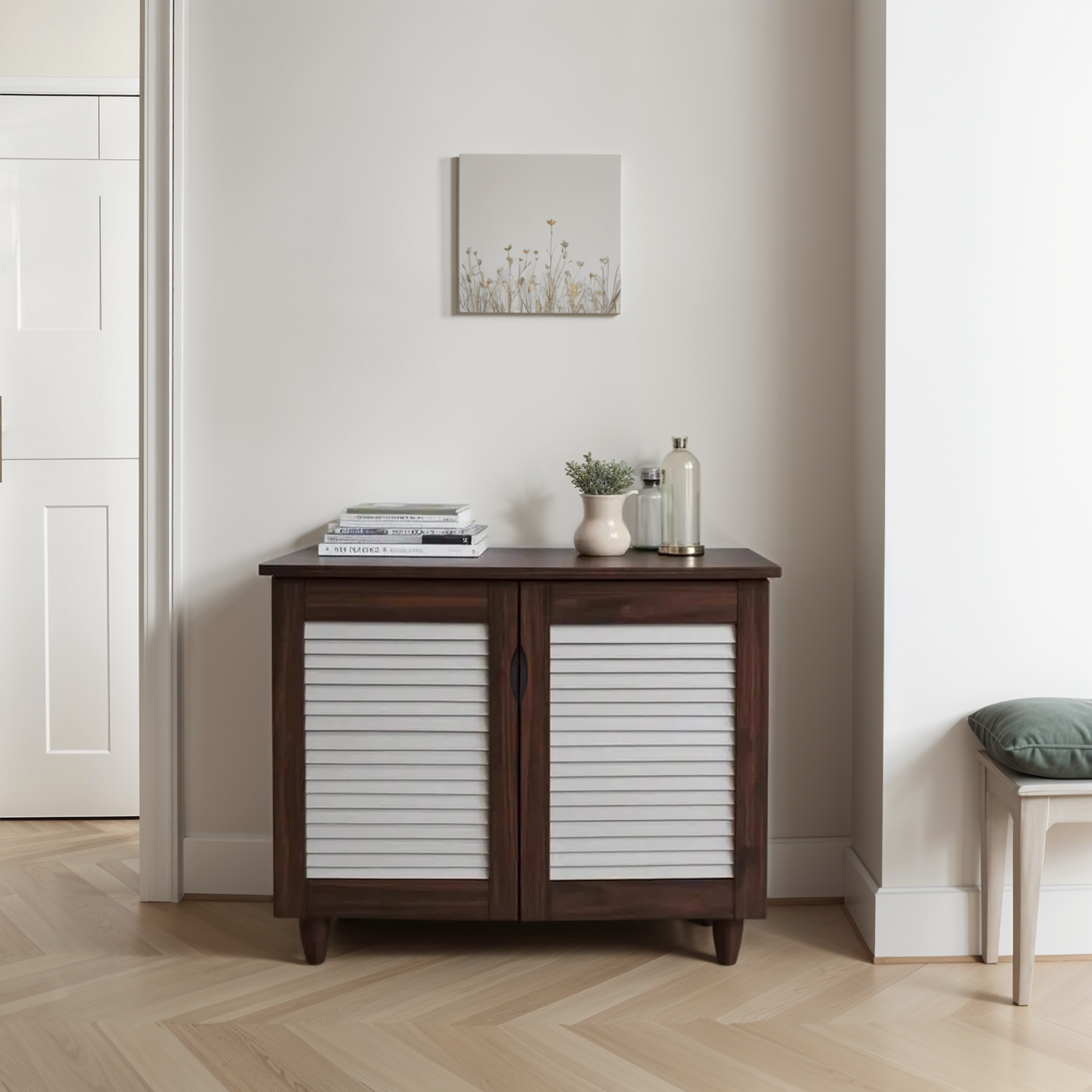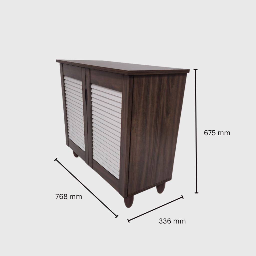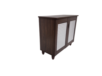 Kaira 2 Door Shoe Rack in Walnut & White Colour