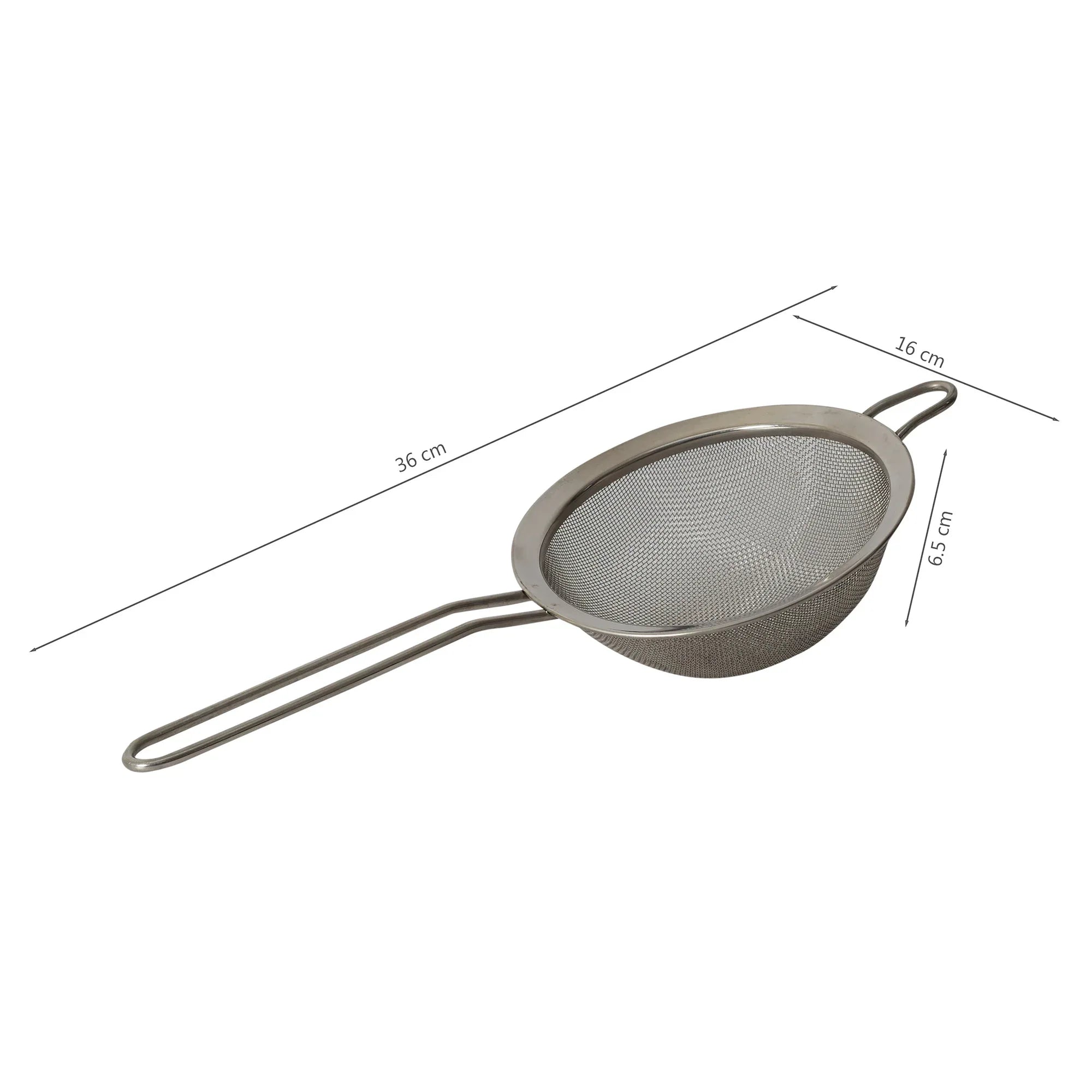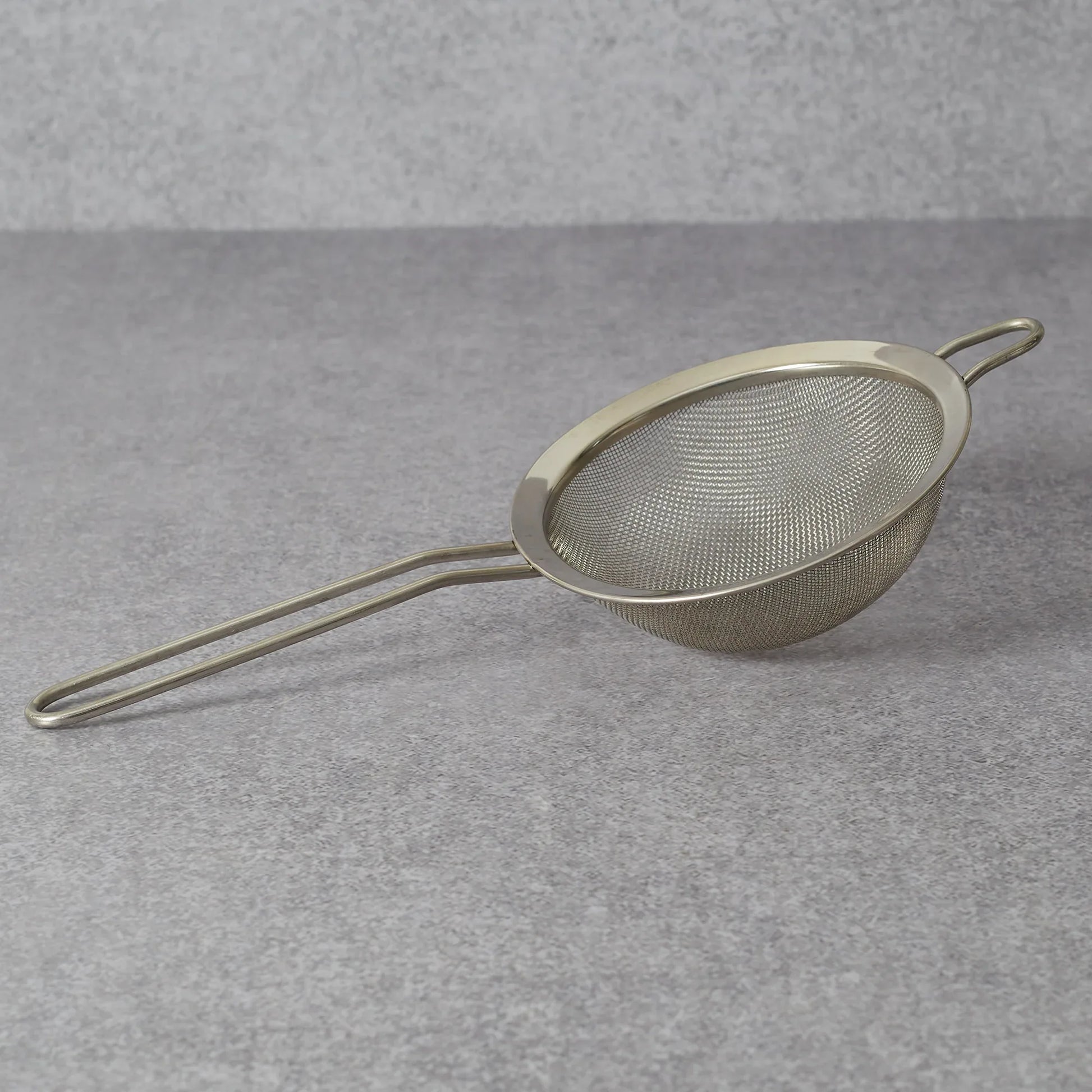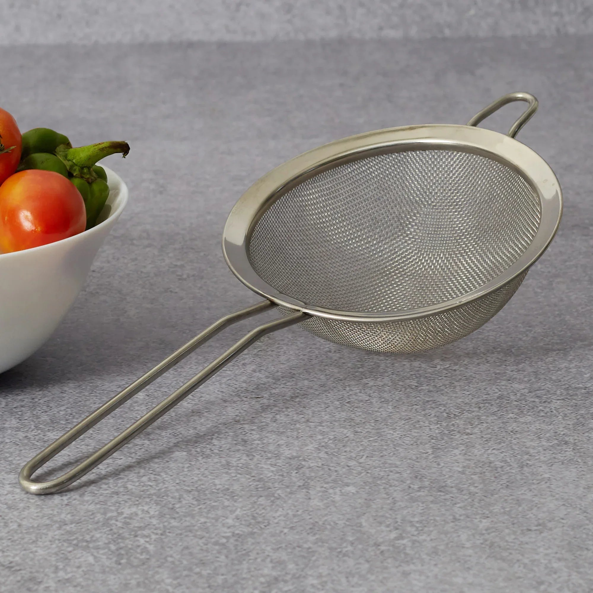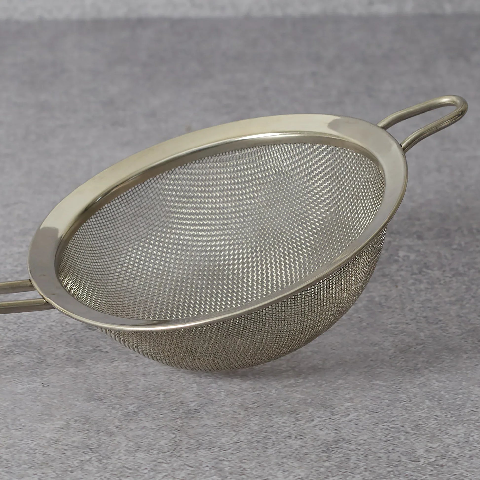 - Strainers for soup will come in handy in countless ways, from straining soup, dal to freshly washed vegetables to sifting flour and cornstarch. The fine mesh, crafted of durable stainless steel, is particularly suited to giving your baked goods the perfect dusting of powdered sugar, cocoa or cinnamon.