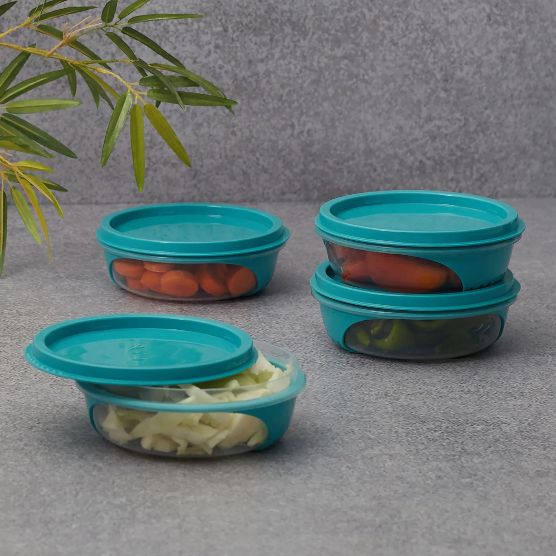 Kitchen Mate Food Storage Round Container 250 Ml With Freezer & Microwave Safe & Bpa Free Set Of 6 in Teal Colour