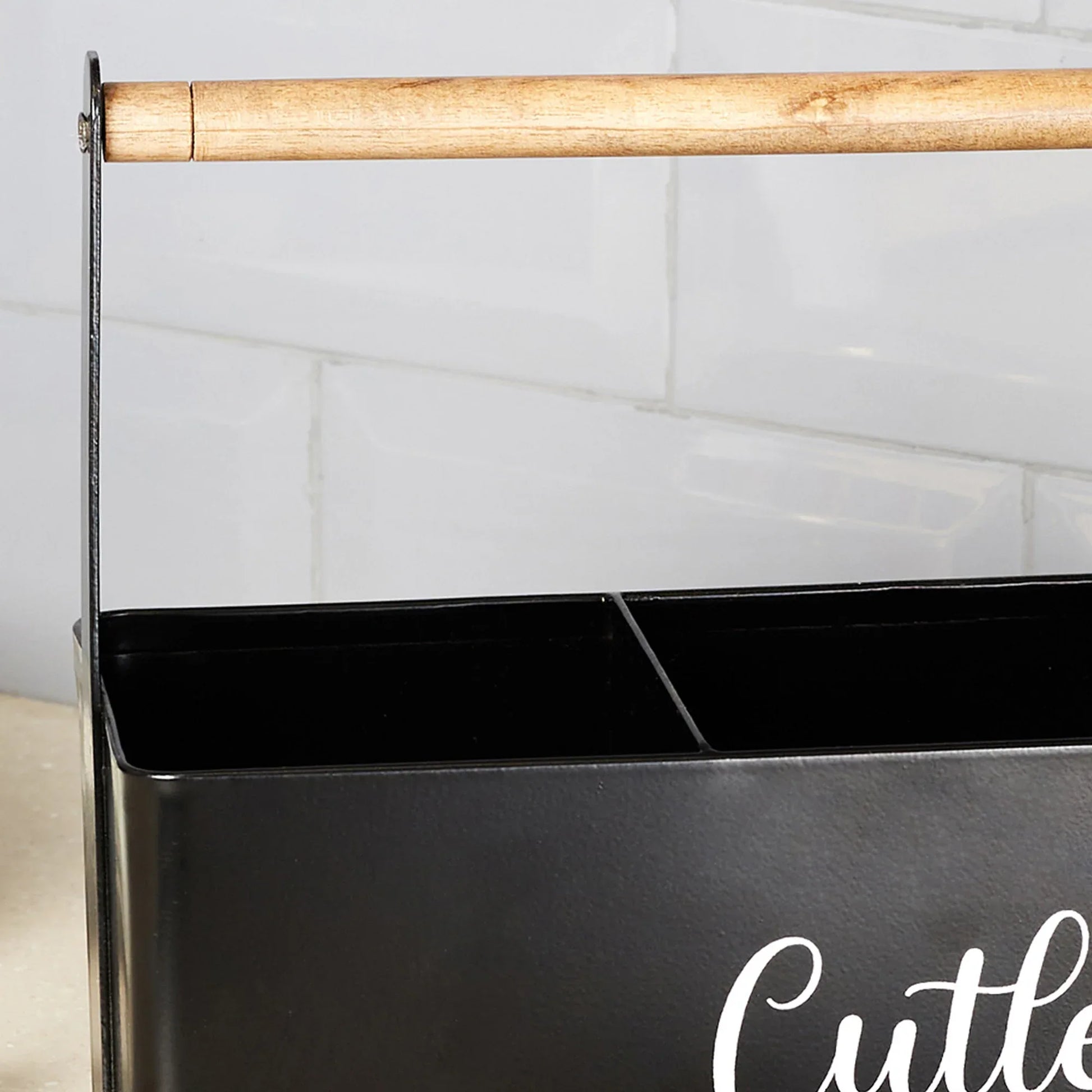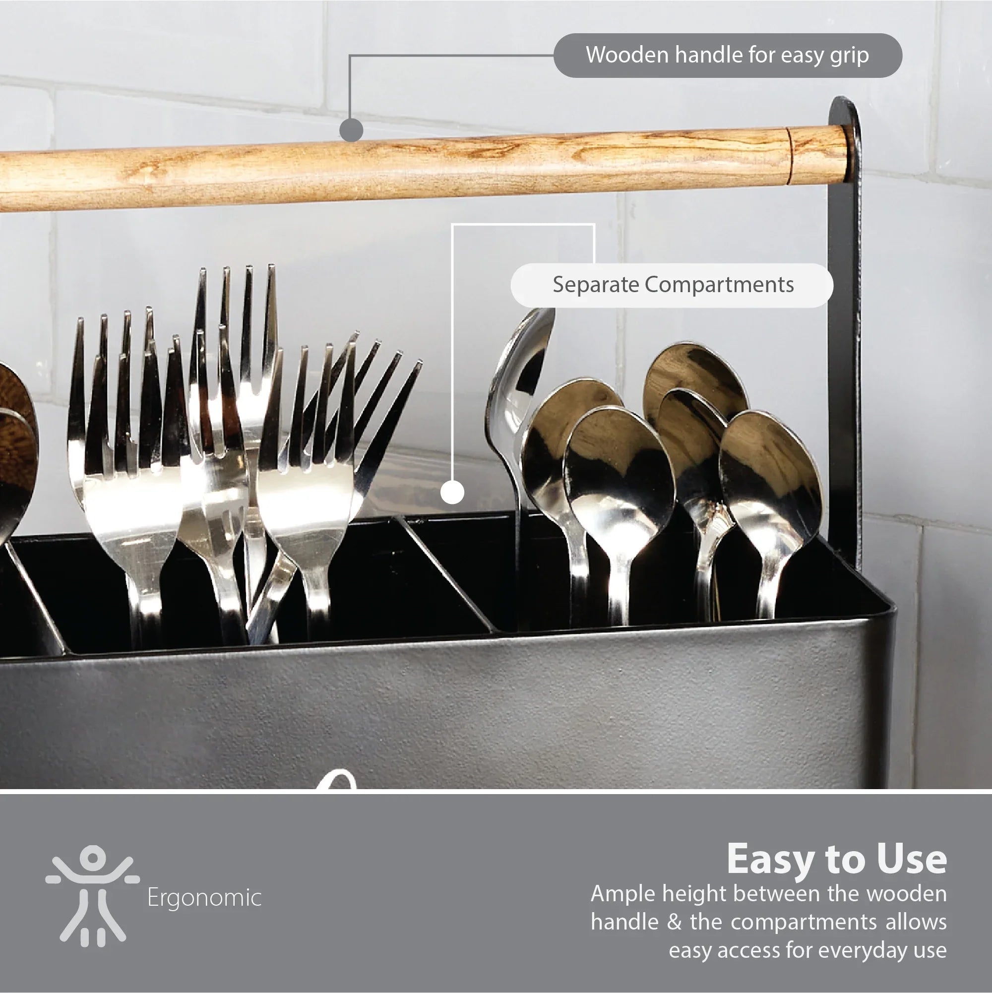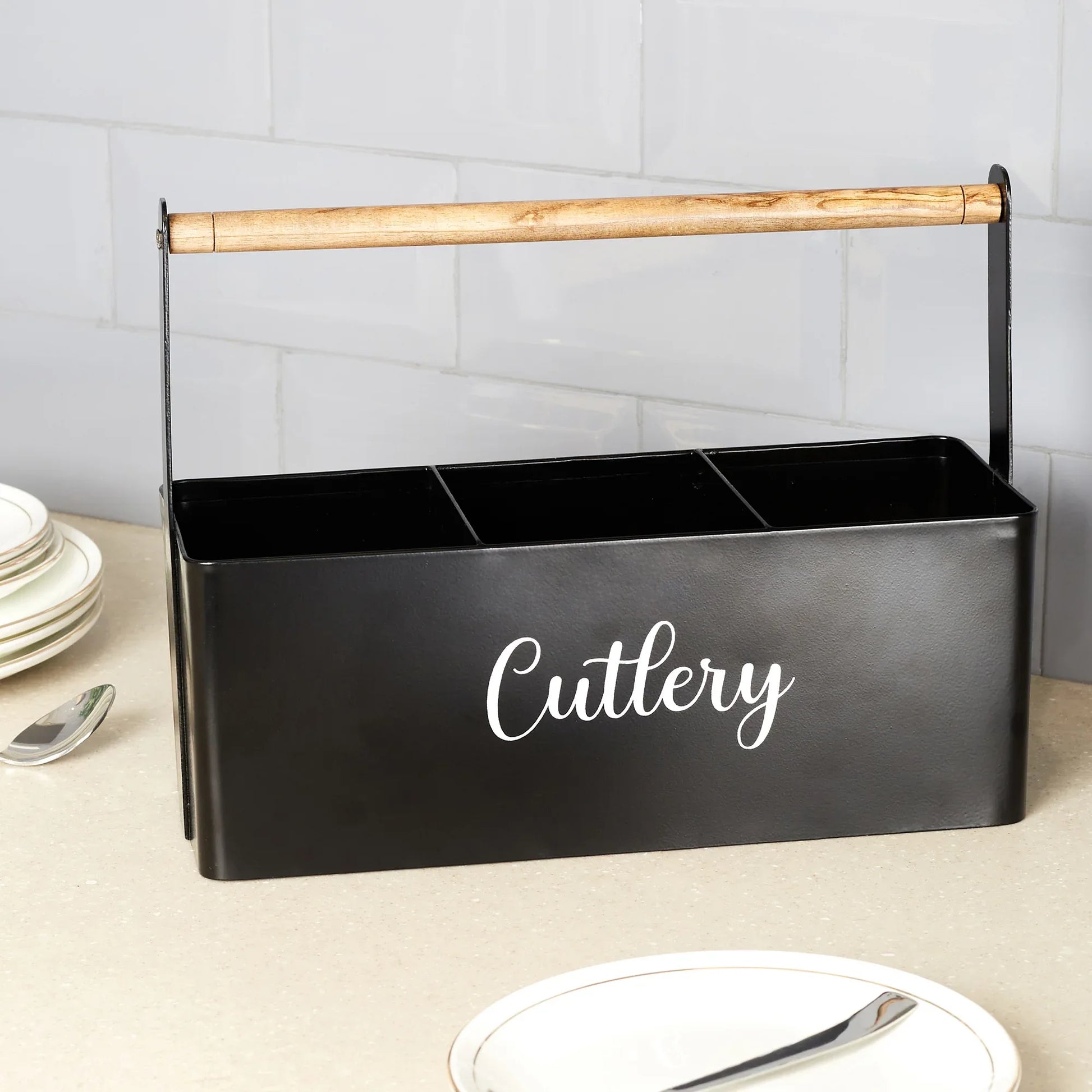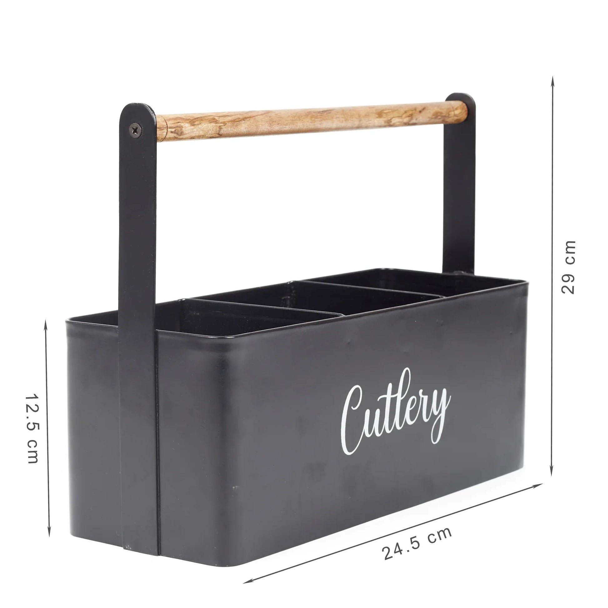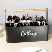 Lattice Metal and Wood Cutlery Organizer in Black Colour