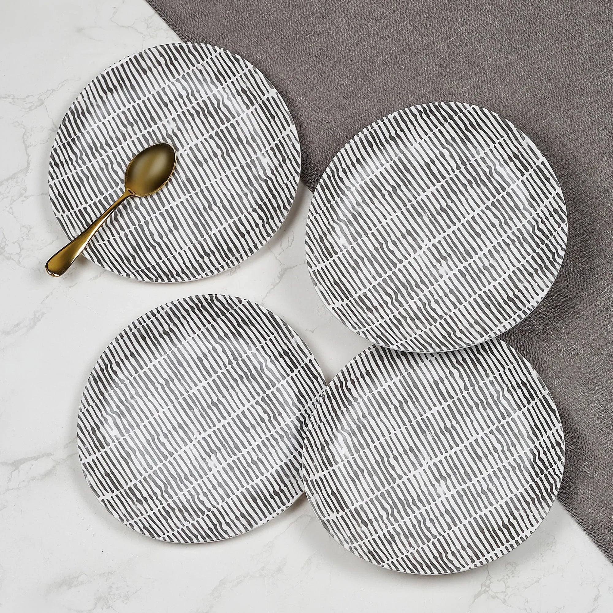 Linea Melamine Quarter Plate Set of 4 in Black & White Colour
