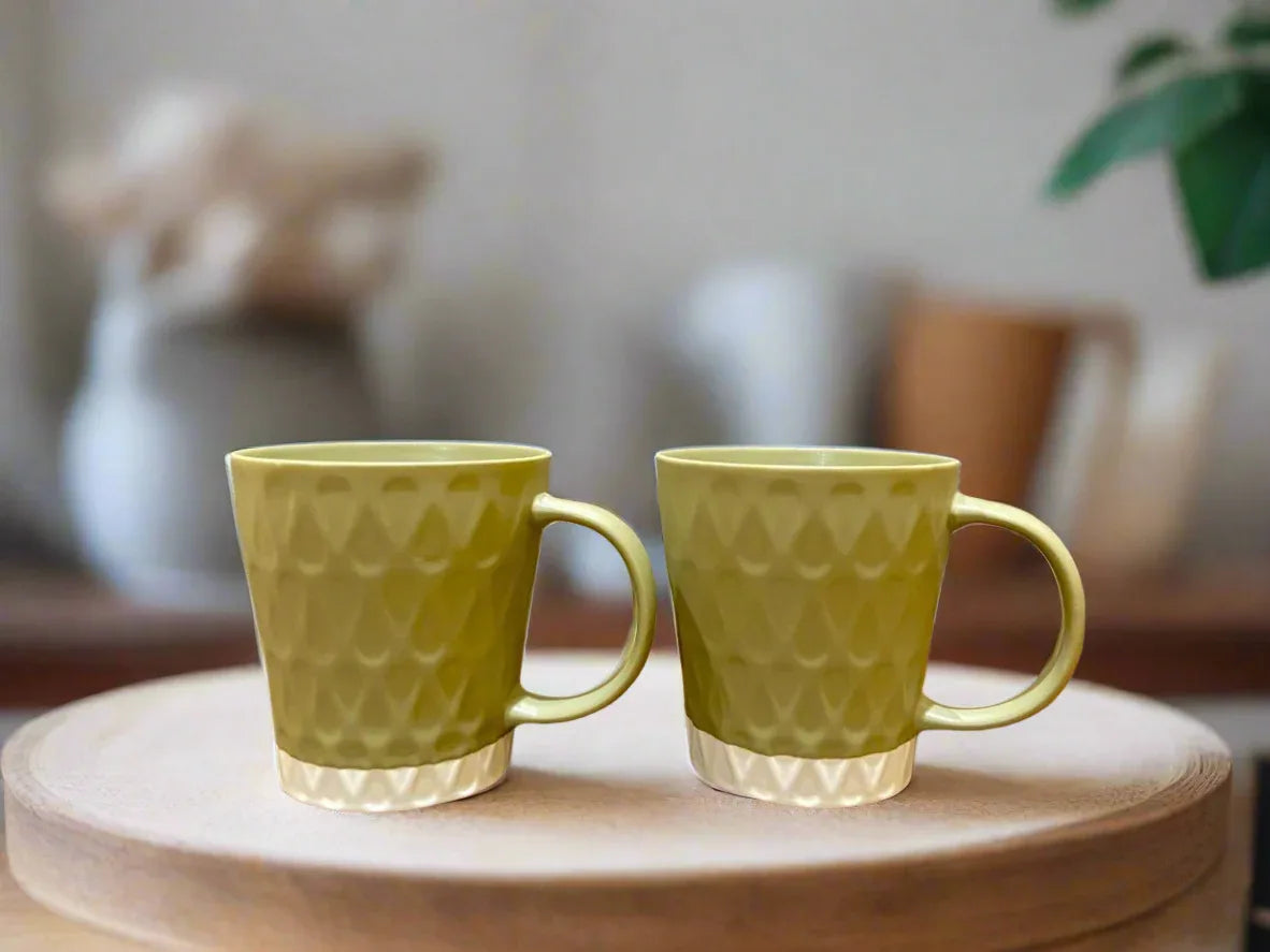 Living Essence Embossed Bone China Mug 350ml Set of 2 Pcs in Brown Colour