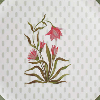 Indulge in the beauty of Nelumbra melamine dinnerware, marrying Indian Mughal art with contemporary flair. Each piece showcases glorious lotus motifs, adding a touch of cultural richness to your table setting.