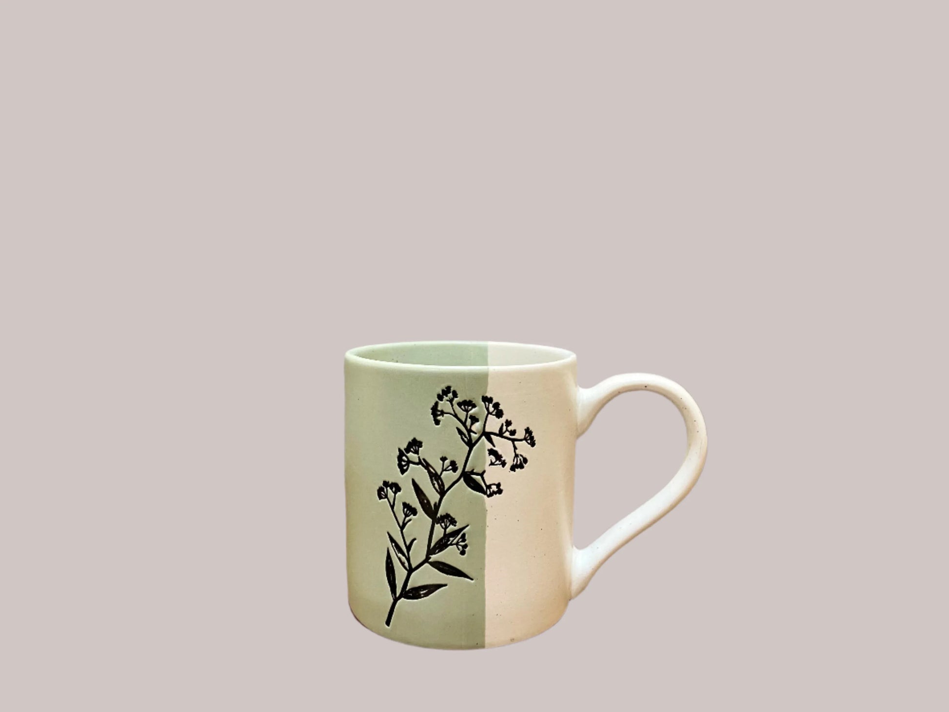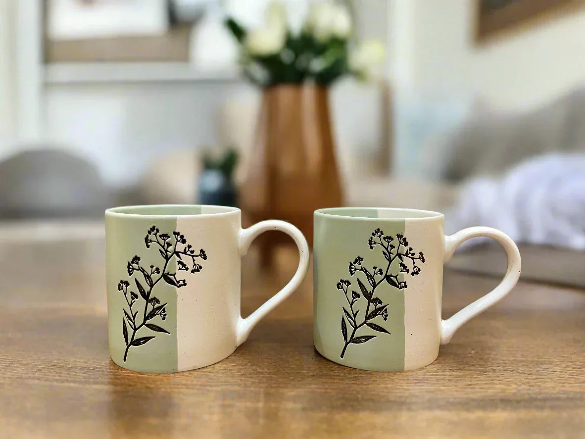 Living Essence Wildflower Stoneware Mug 330ml Set of 2Pcs in White & Green Colour