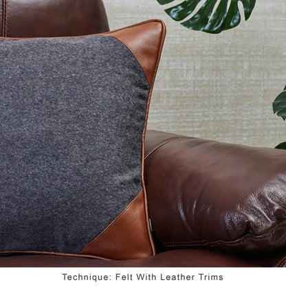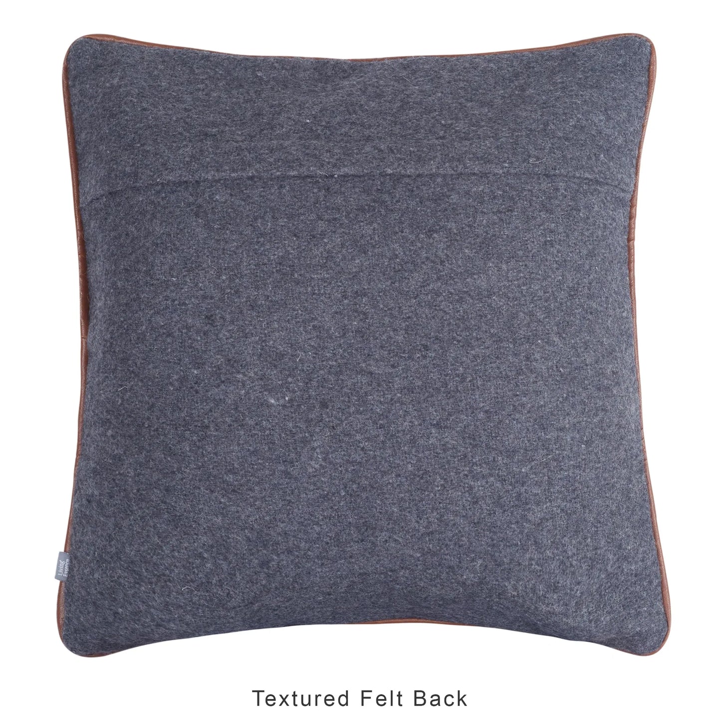 - Felt with leather trimmings fabric stitches the cushion cover together with a textured felt back.