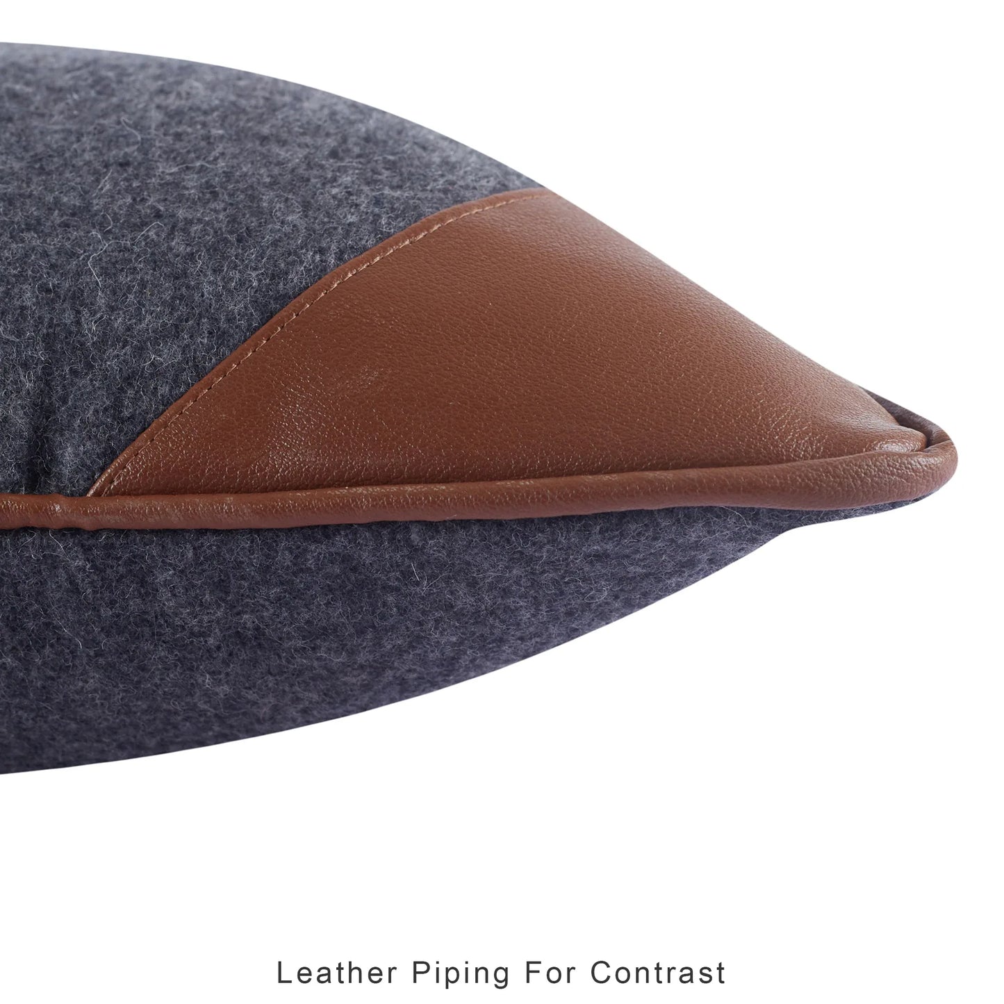 - Plush felt cushion cover mixes soft to buttery smooth leather trimmings in its tactile textures. With top of the class patchwork in charcoal this cushion cover a must have for every luxurious comfort enthusiast.