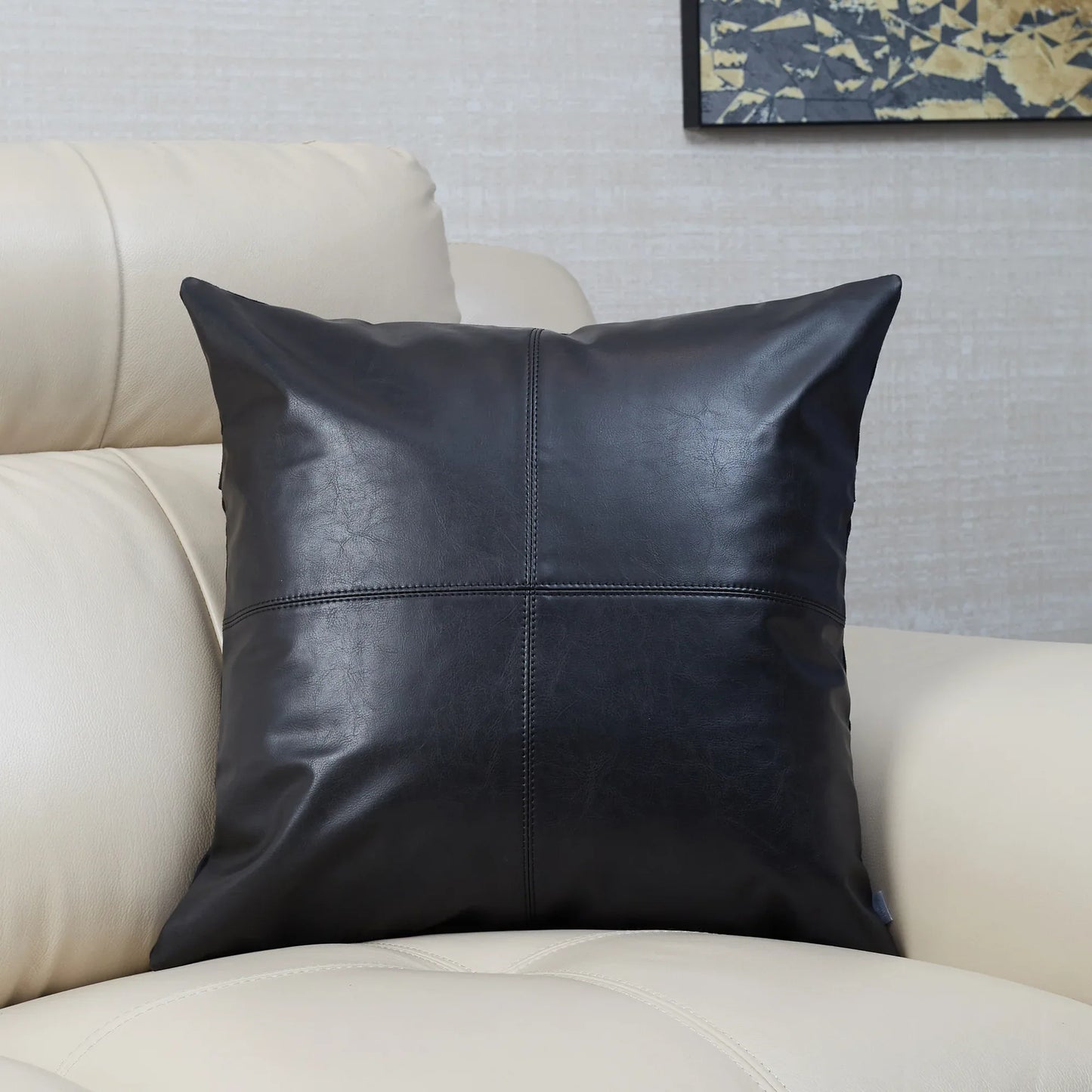 Luxe Living Vegan Leather Cushion Cover 45x45 Cm in Black Colour