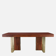 Spruce up your dining interiors with the Marvis dining table crafted with real sheesham wood. The dining table juxtaposes traditional aesthetics with that of modern as the sheesham flows into metallic gold. The elegant dining table seats upto six people.