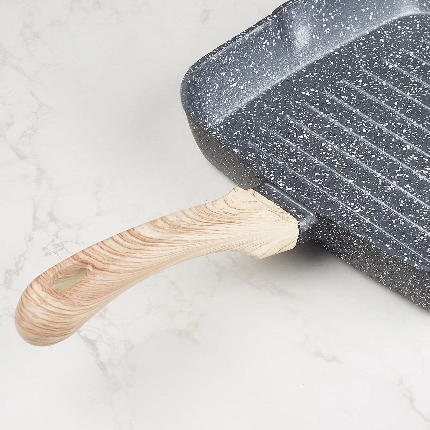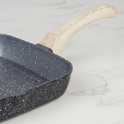 MasterCook+ 100% Virgin Aluminium Die-Cast Square Grill Pan 24 Cm in Black & Wood Colour