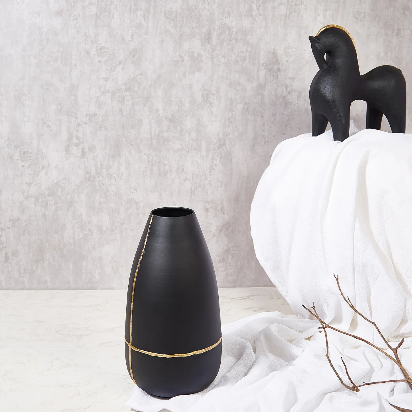 Mezzo Metal Vases 35 cm in Black Colour