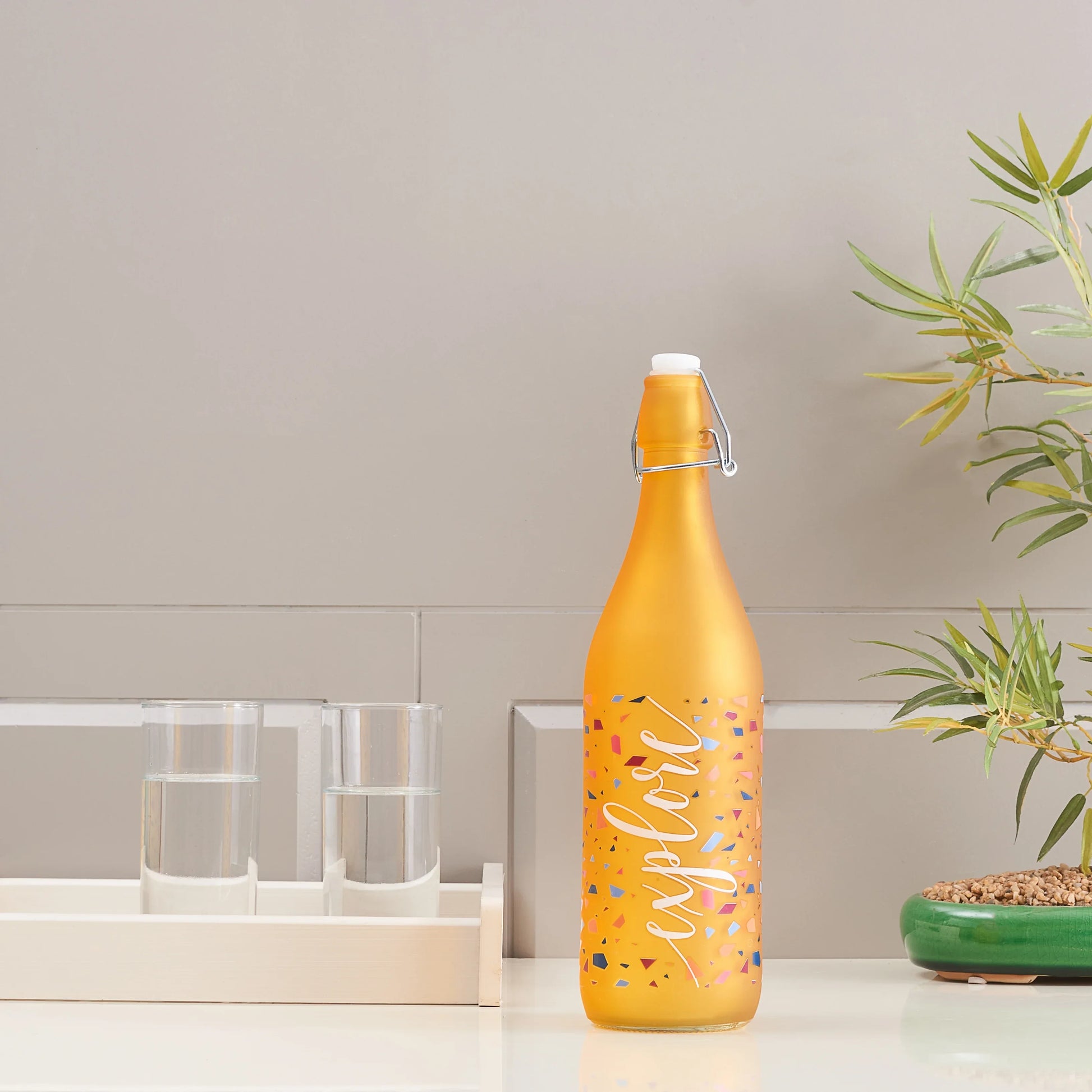 Milan Glass Yellow Frosted Bottle 1L in Yellow Colour