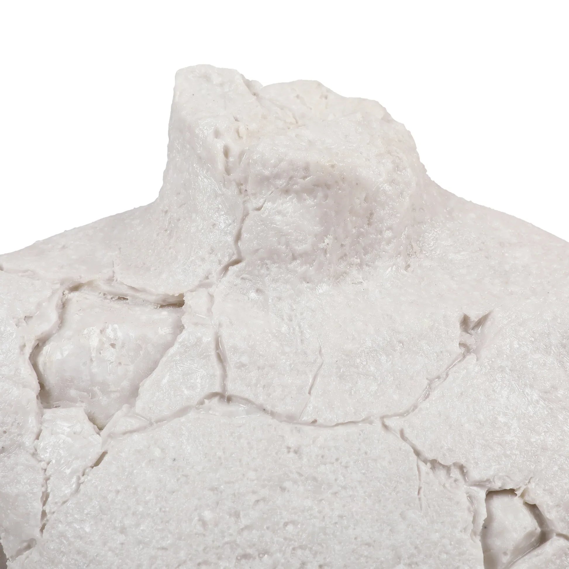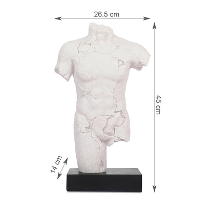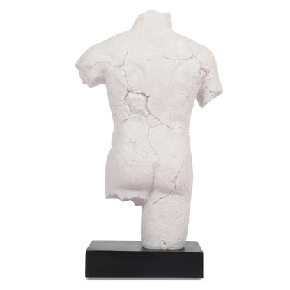 Inspired by the Greeks who were known for their superior built, strength and beauty, this sculpture is a stunning interpretation of the human male torso. Crafted with meticulous care, its sleek white finish and intricate details capture the essence of sophisticated styling, while the cracks on the design symbolize the ancient Roman and Greek art forms. Whether nestled on a bookshelf, taking center stage on your coffee table, or adding a touch of class to your office desk, this exquisite item promises to blend seamlessly with your existing decor, elevating the aesthetic with its pristine presence.